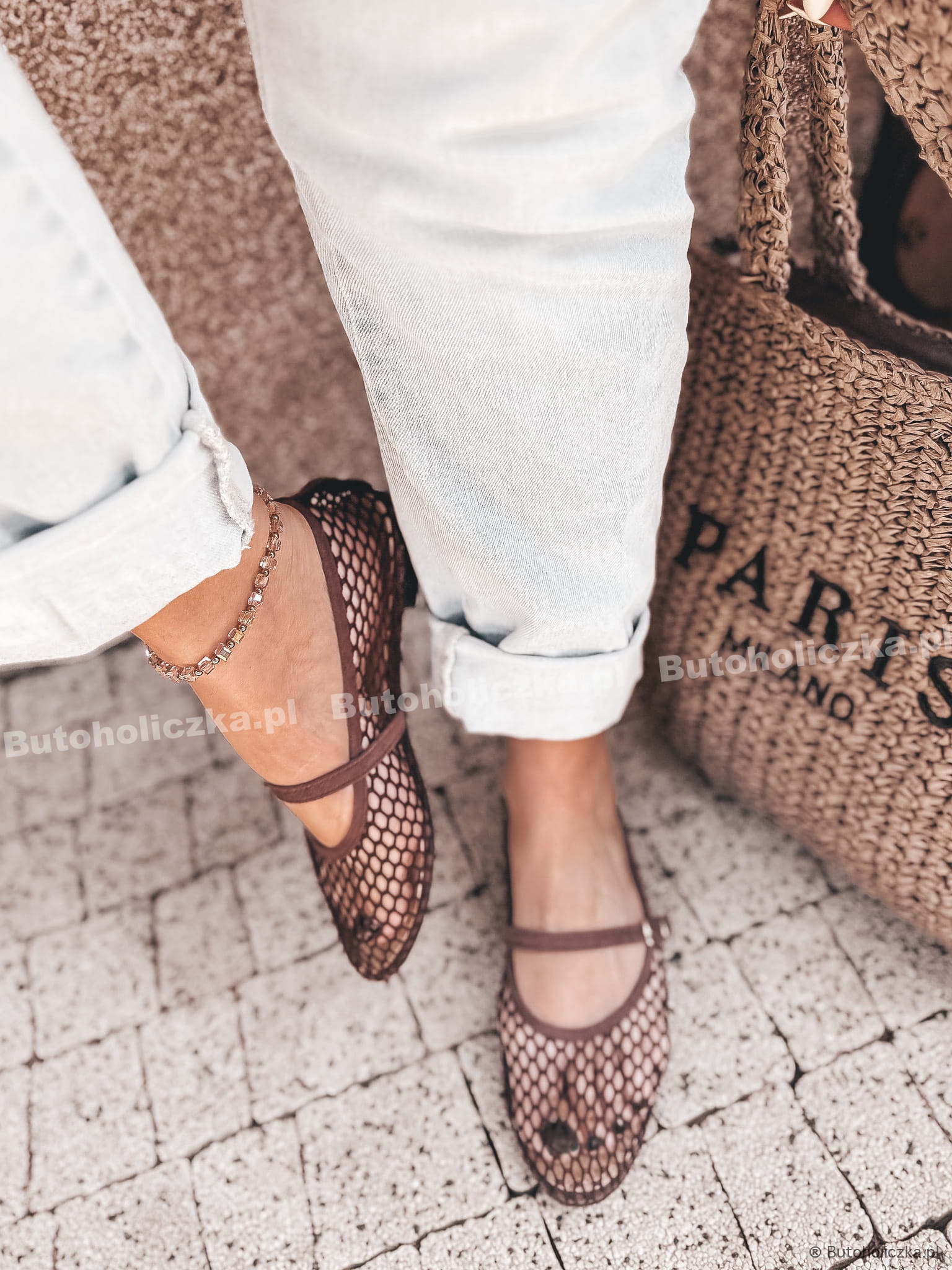 HOT Baleriny PRETTY siateczka klasyka CZEKOLADA
