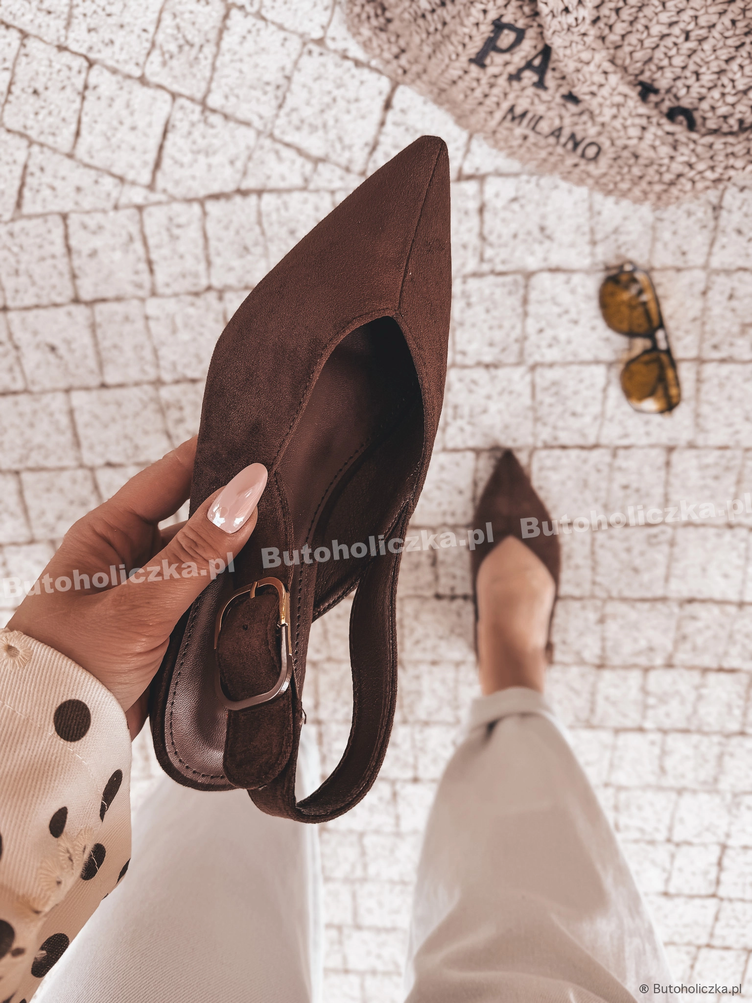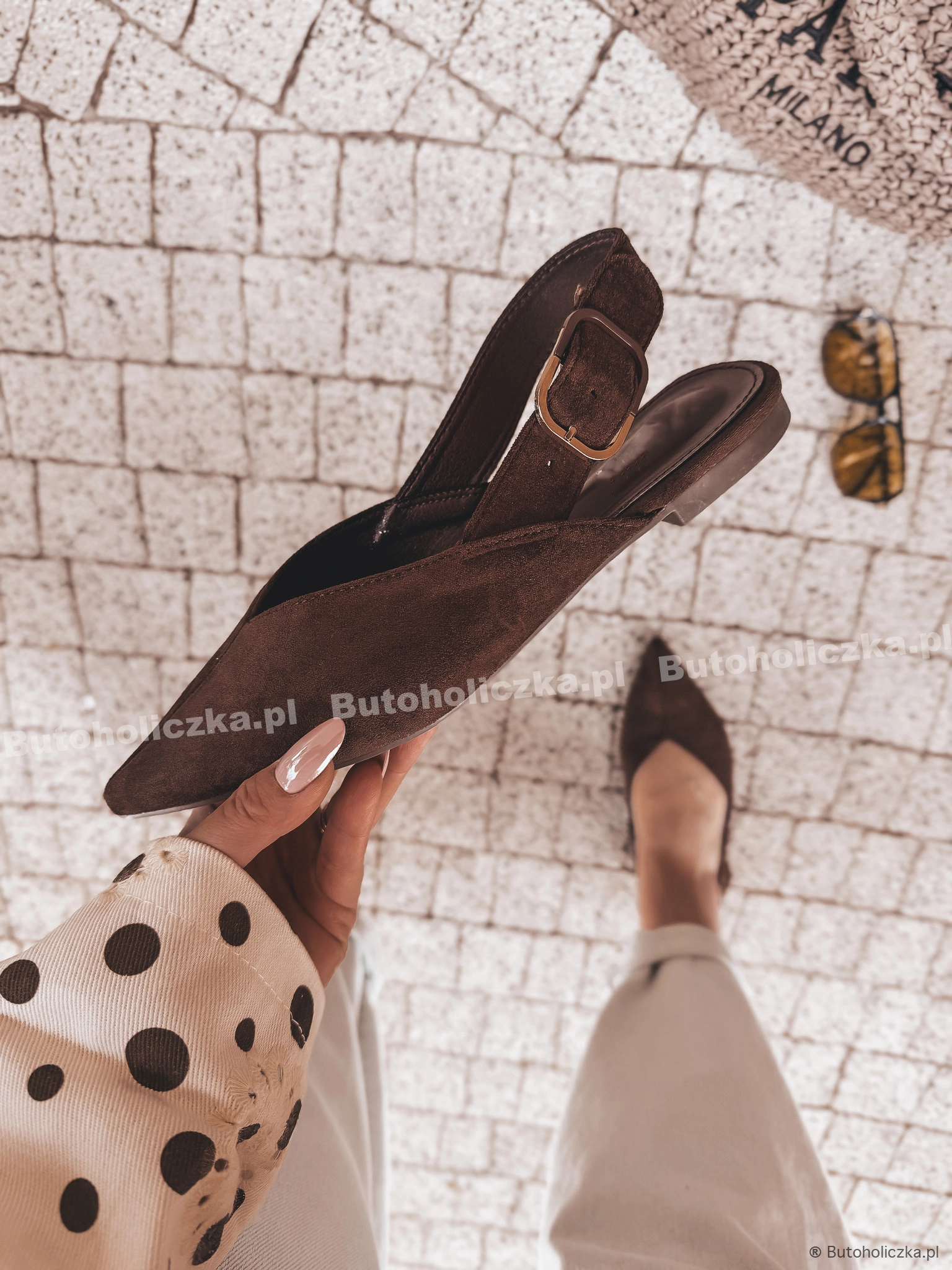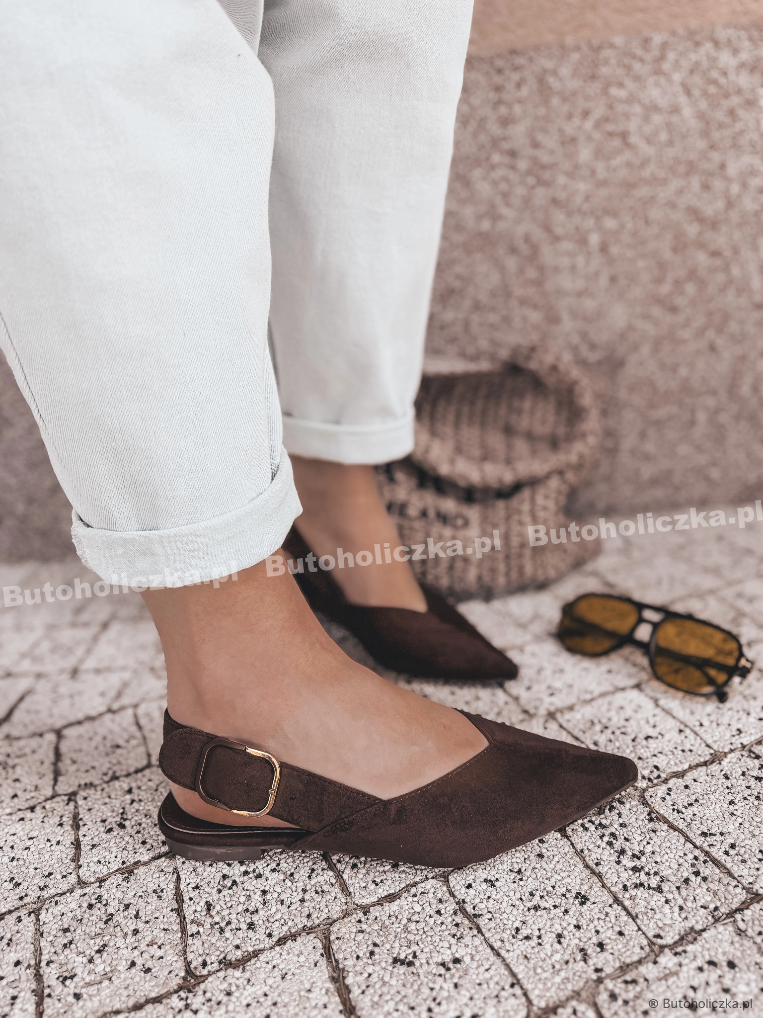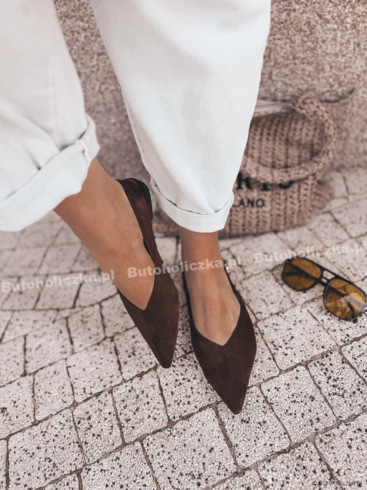 HOT Balerinki TOFFI klasyka w szpic CZEKOLADA