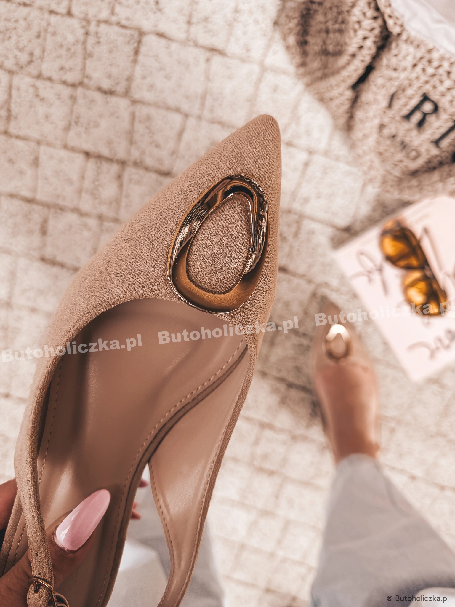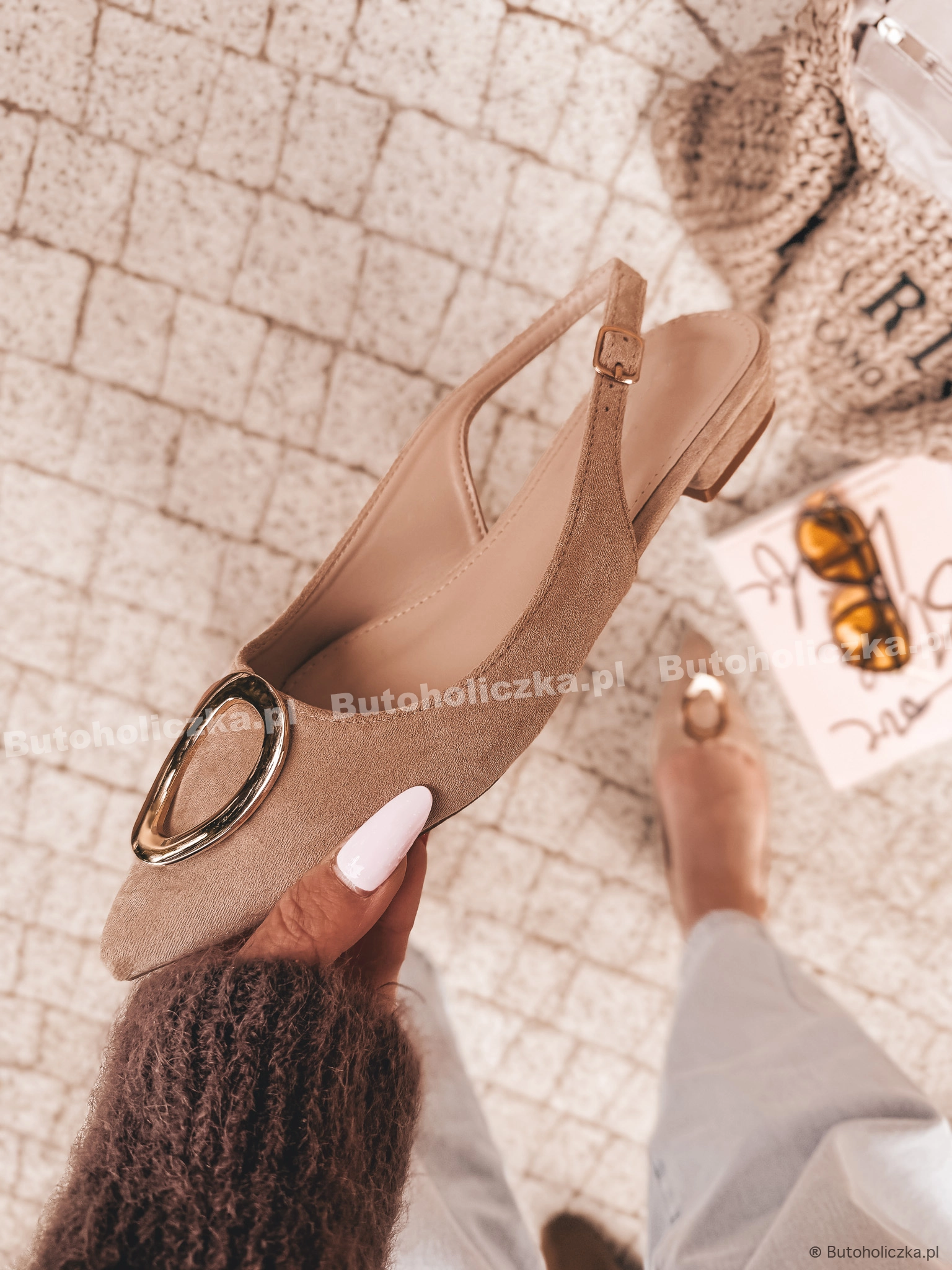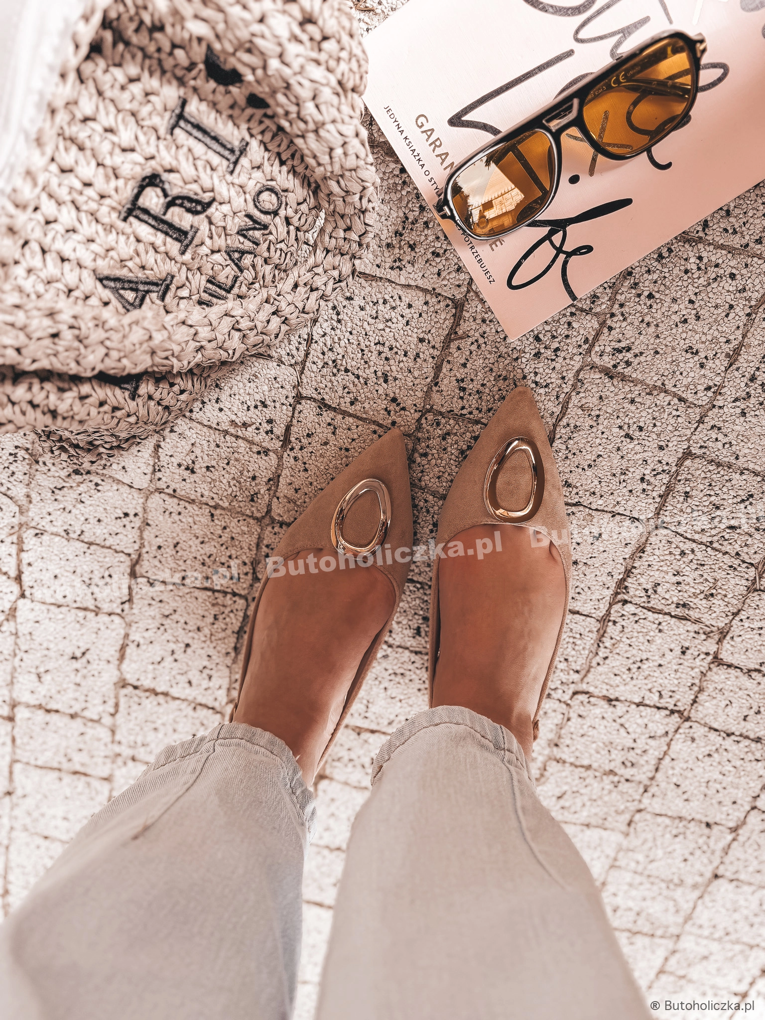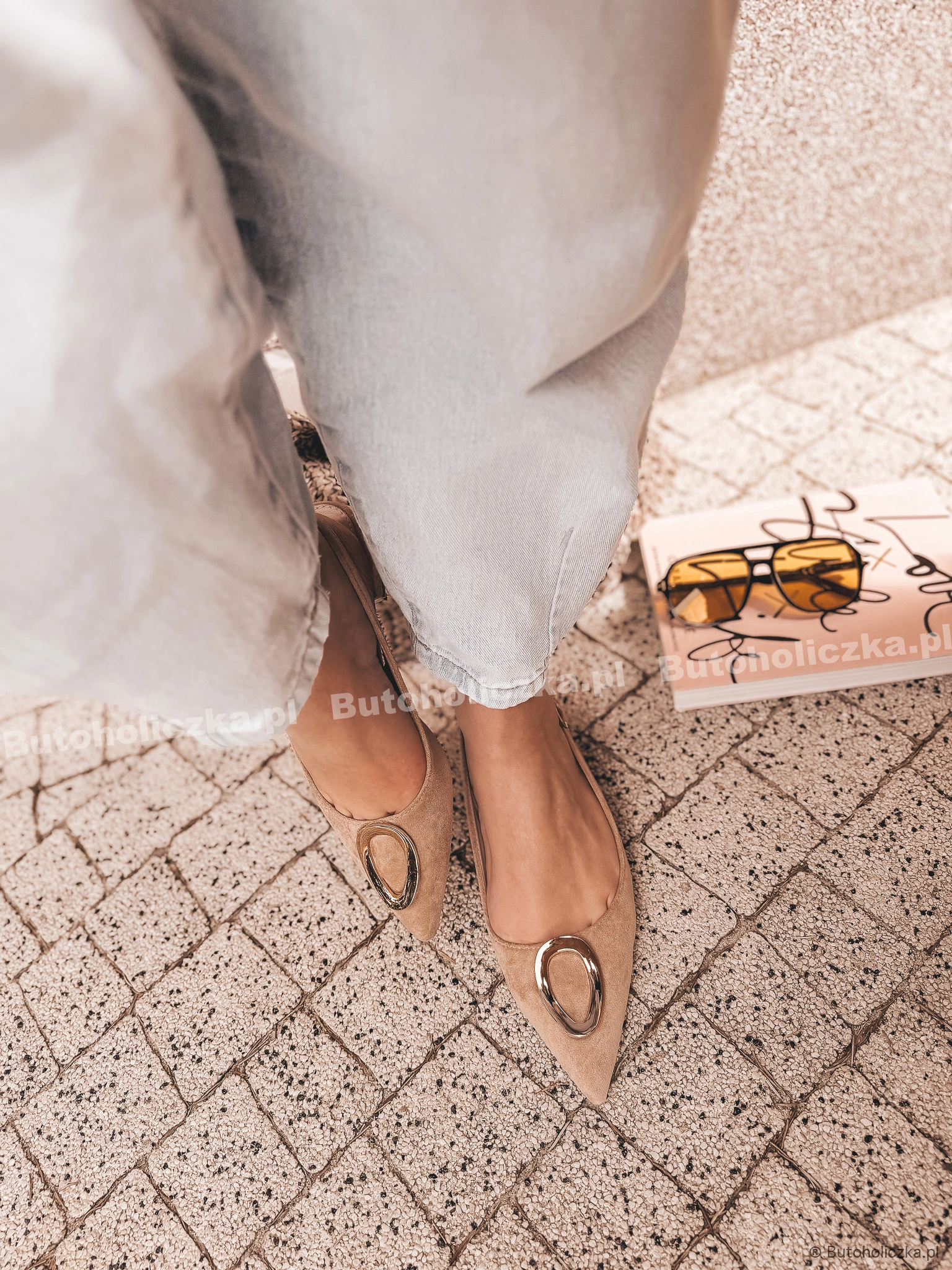 Łączą w sobie wygodę i elegancję, a ich uniwersalny styl sprawia, że pasują do wielu stylizacji. Niewielki obcasik, wydłuży optycznie nogi. Ozdobione piękną, złotą klamrą na przodzie.