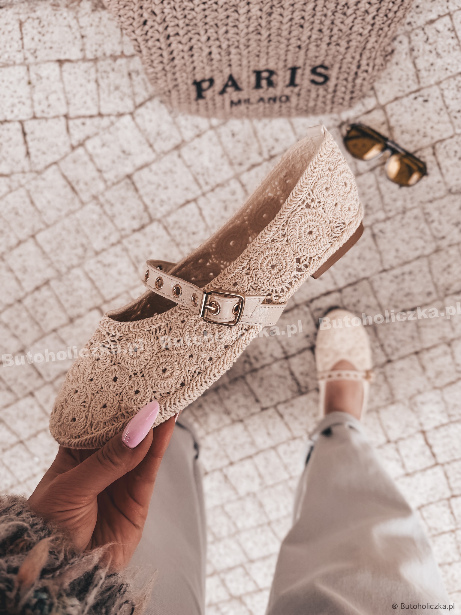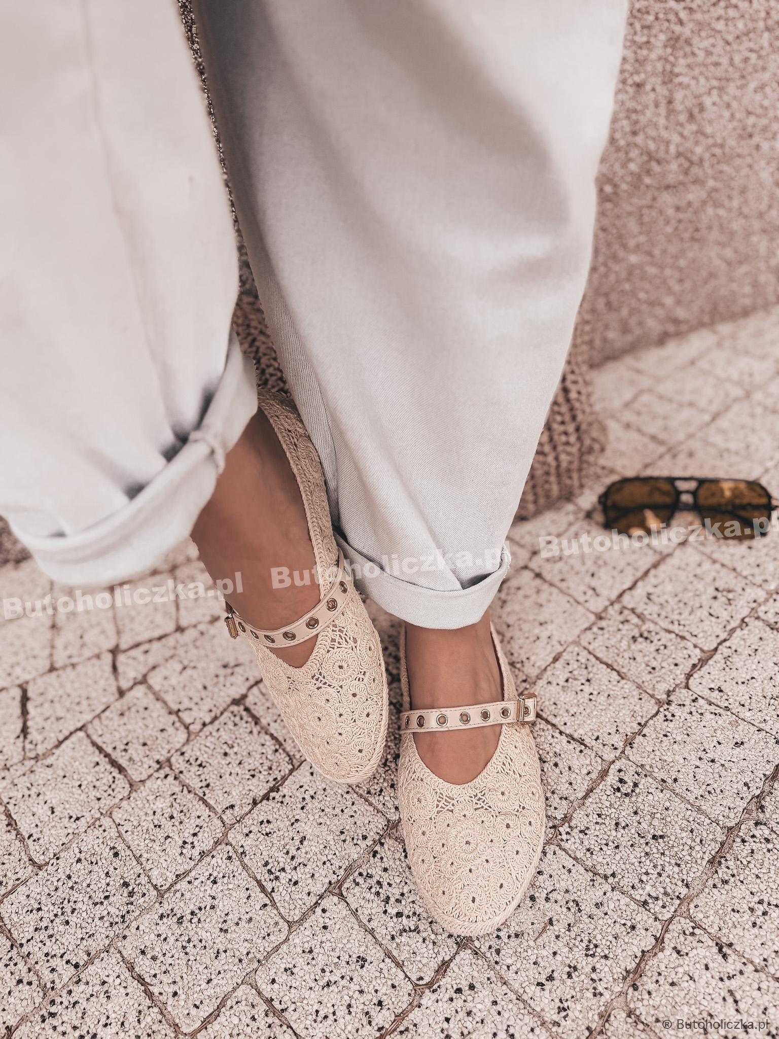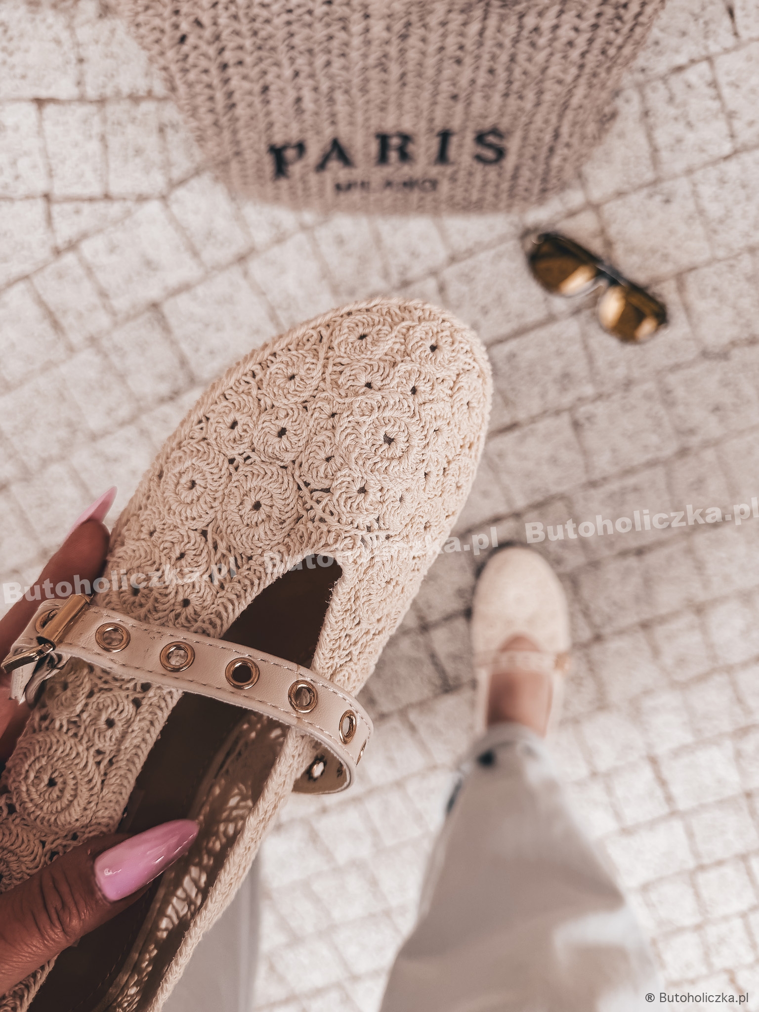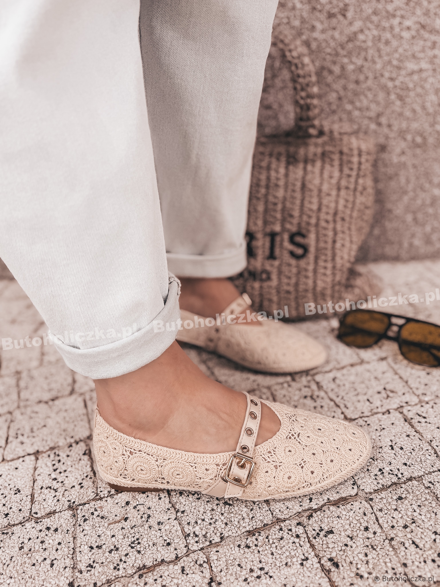 BOSKIE Baleriny BOHO szydełkowe klasyka BEŻOWE