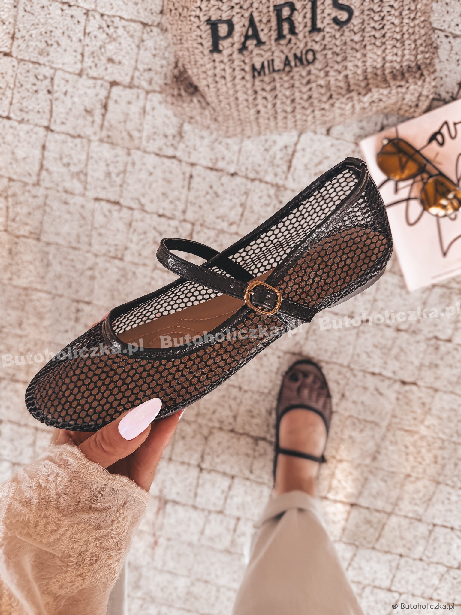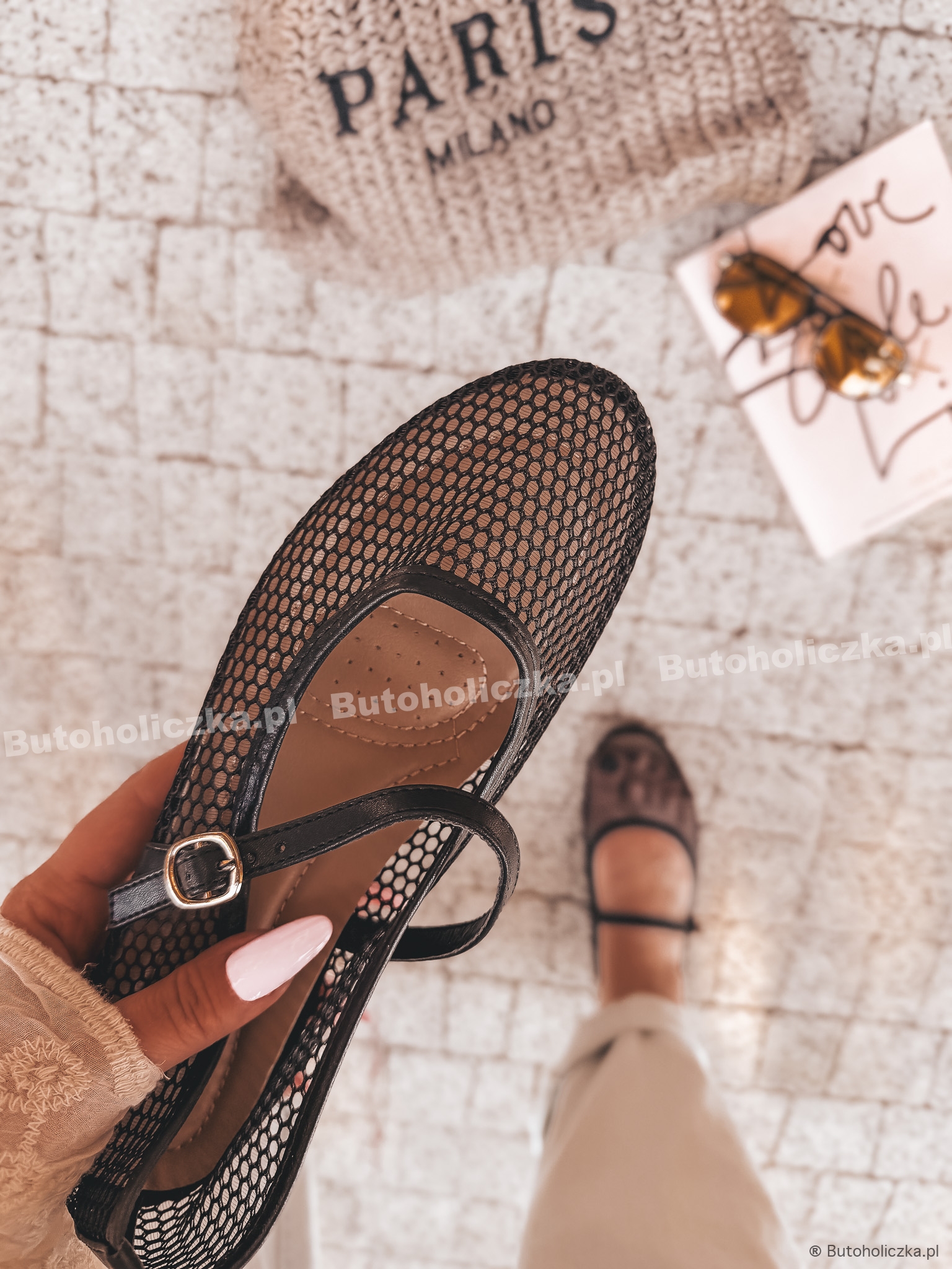 Najmodniejsze baleriny w stylu miu, wykonane z modnej siateczki. Idealnie dopasowują się do stopy, dzięki czemu optycznie wyszczuplają. Wkładane, z regulowanym paskiem. Buty dla wszystkich miłośniczek trendów, łączą efektowny wygląd i wygodę.