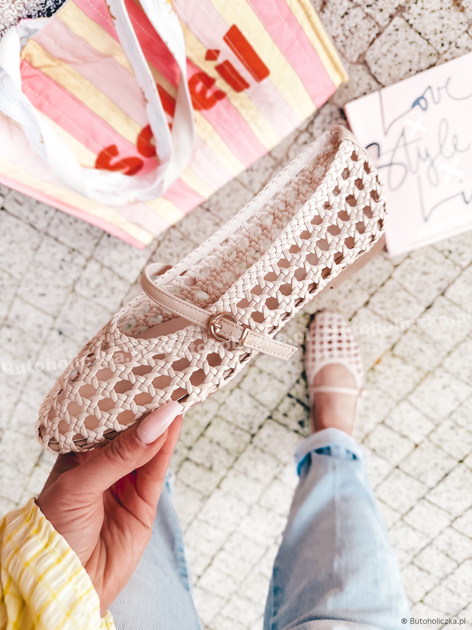 Piękne Baleriny SOFT ażurkowe klasyka BEŻOWE