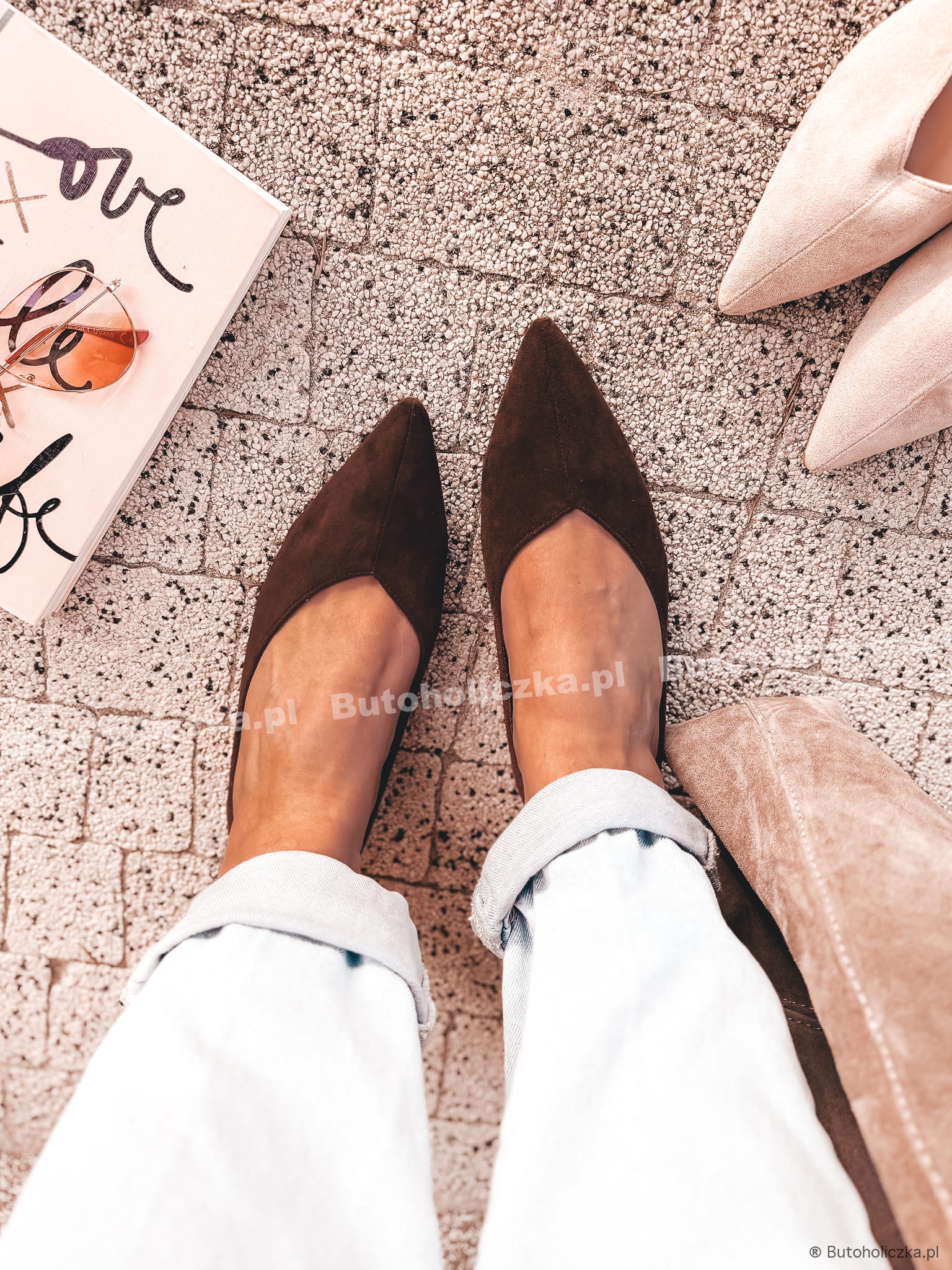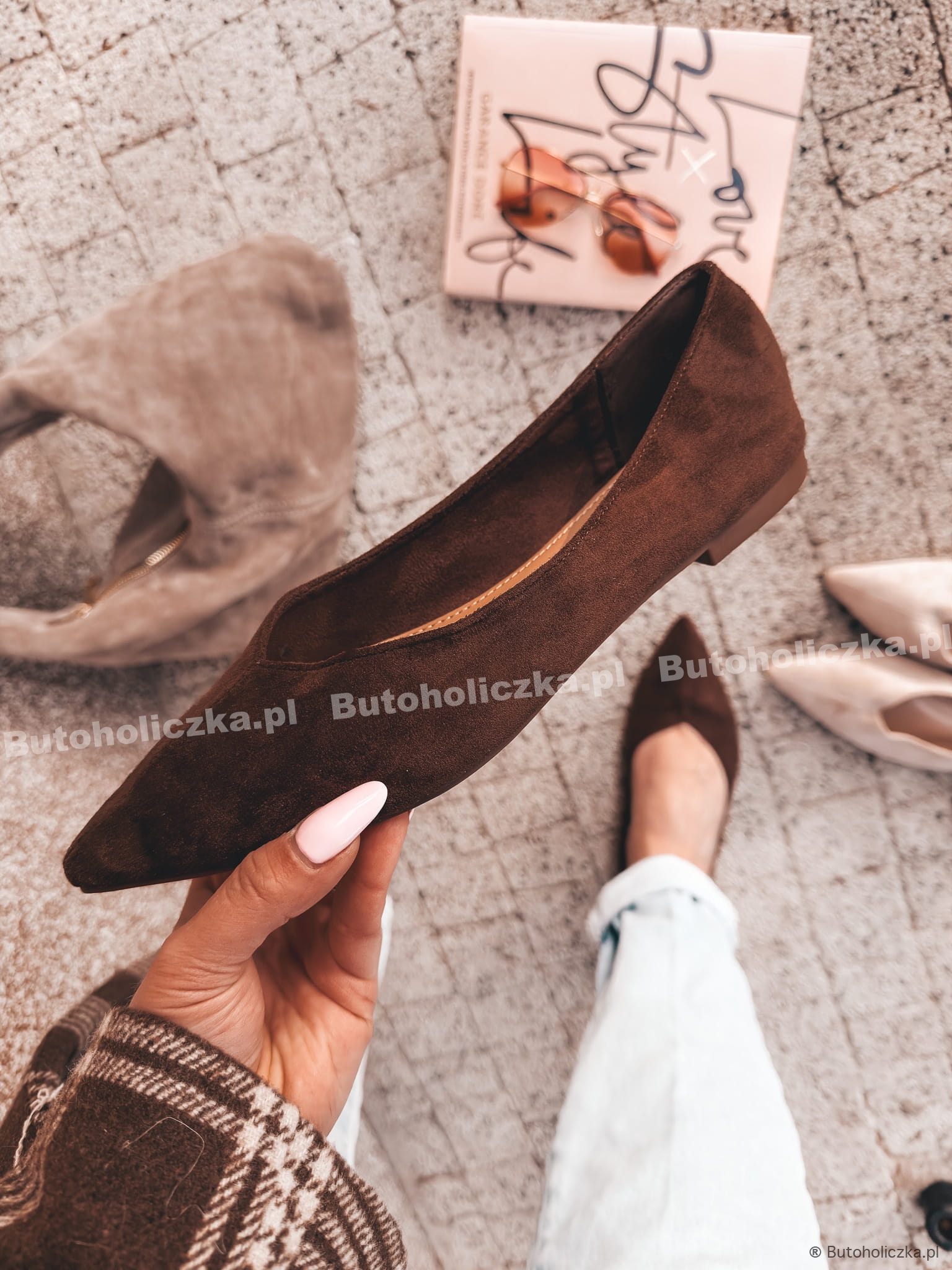 HOT Balerinki LEMAR klasyka w szpic CZEKOLADA