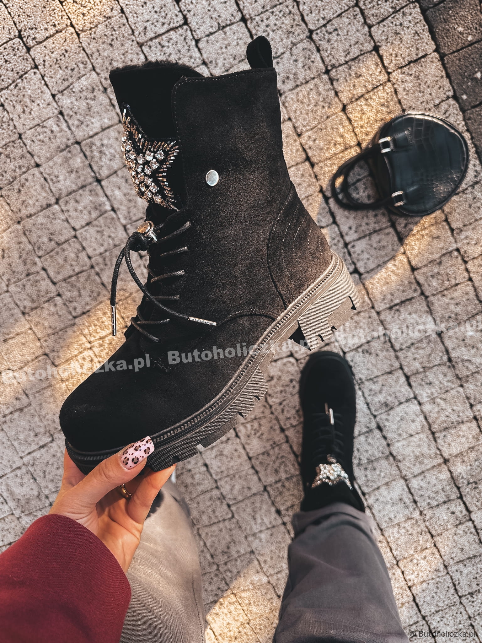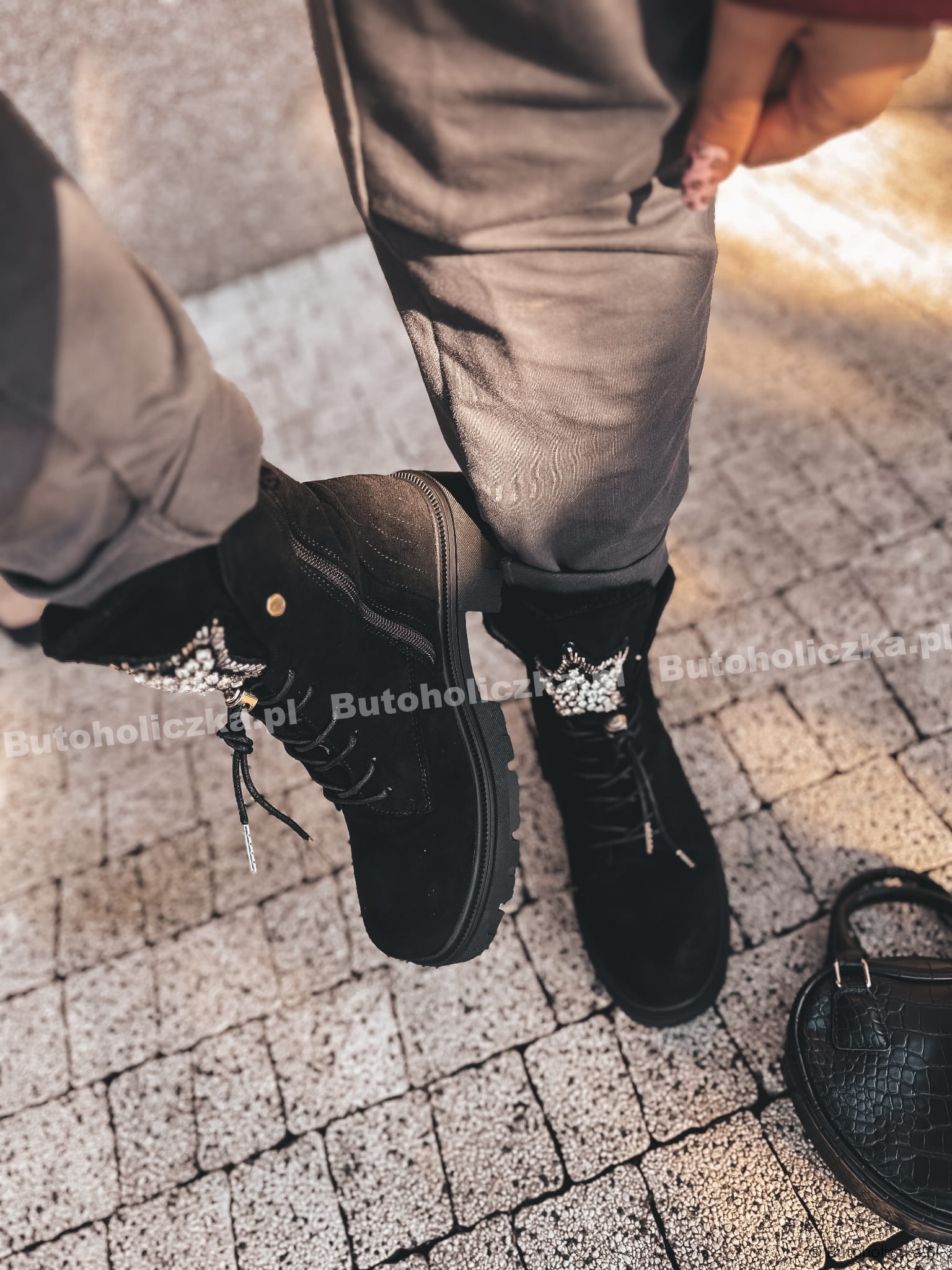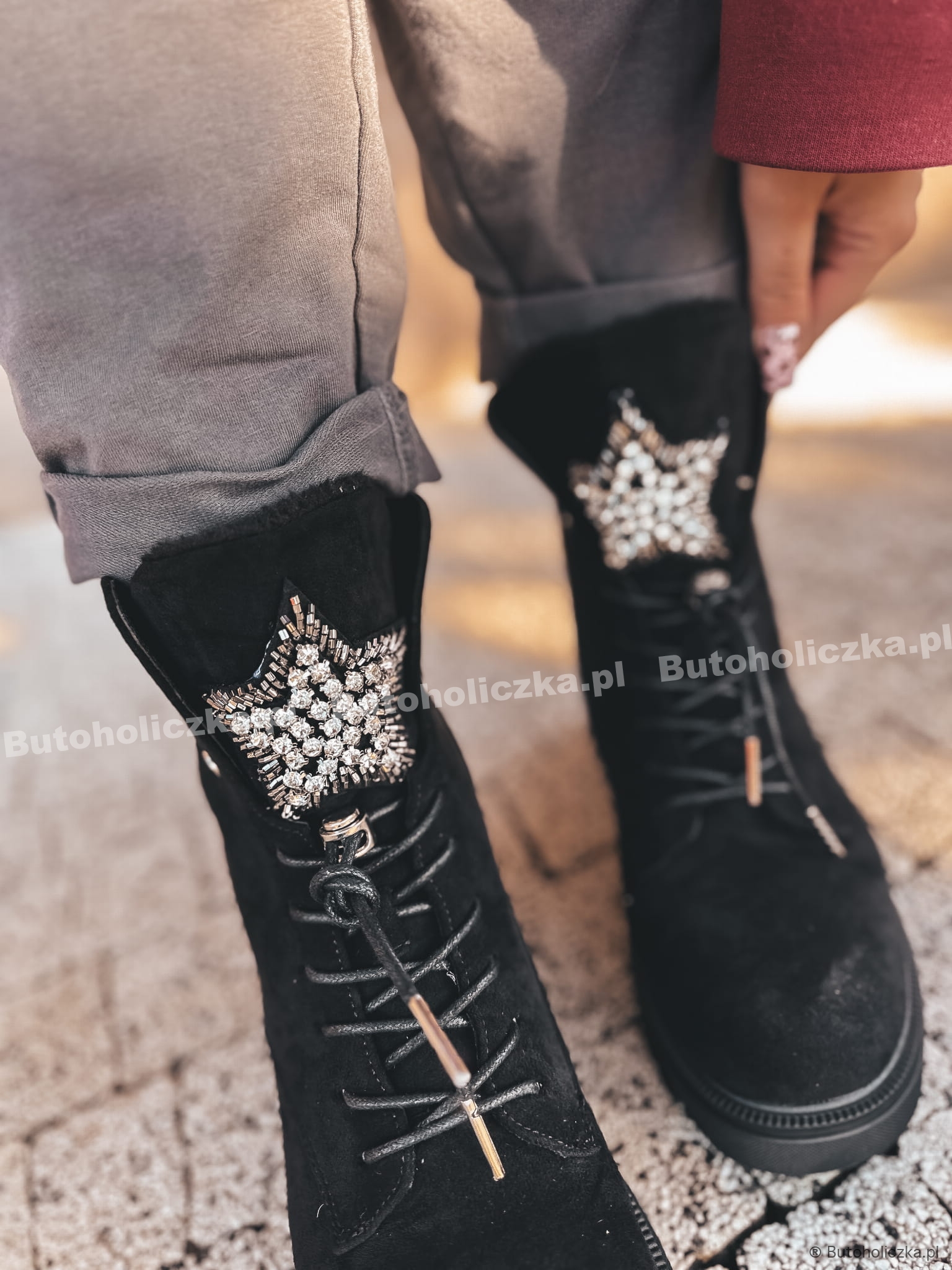 Ekstra Botki GWIAZDA z kamieniami OCIEPLANE CZARNE