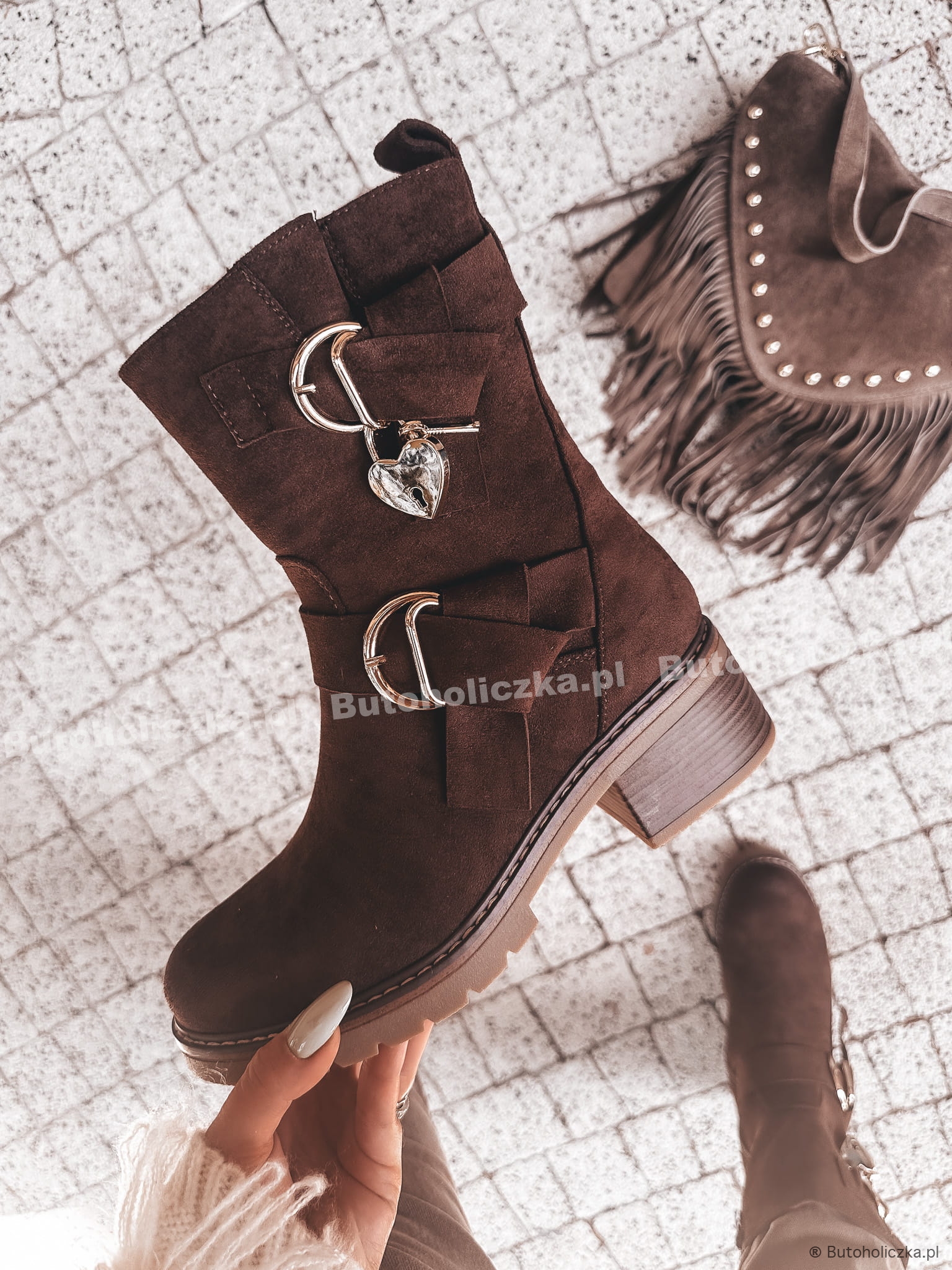 HIT Botki MOON z przywieszkami CZEKOLADA
