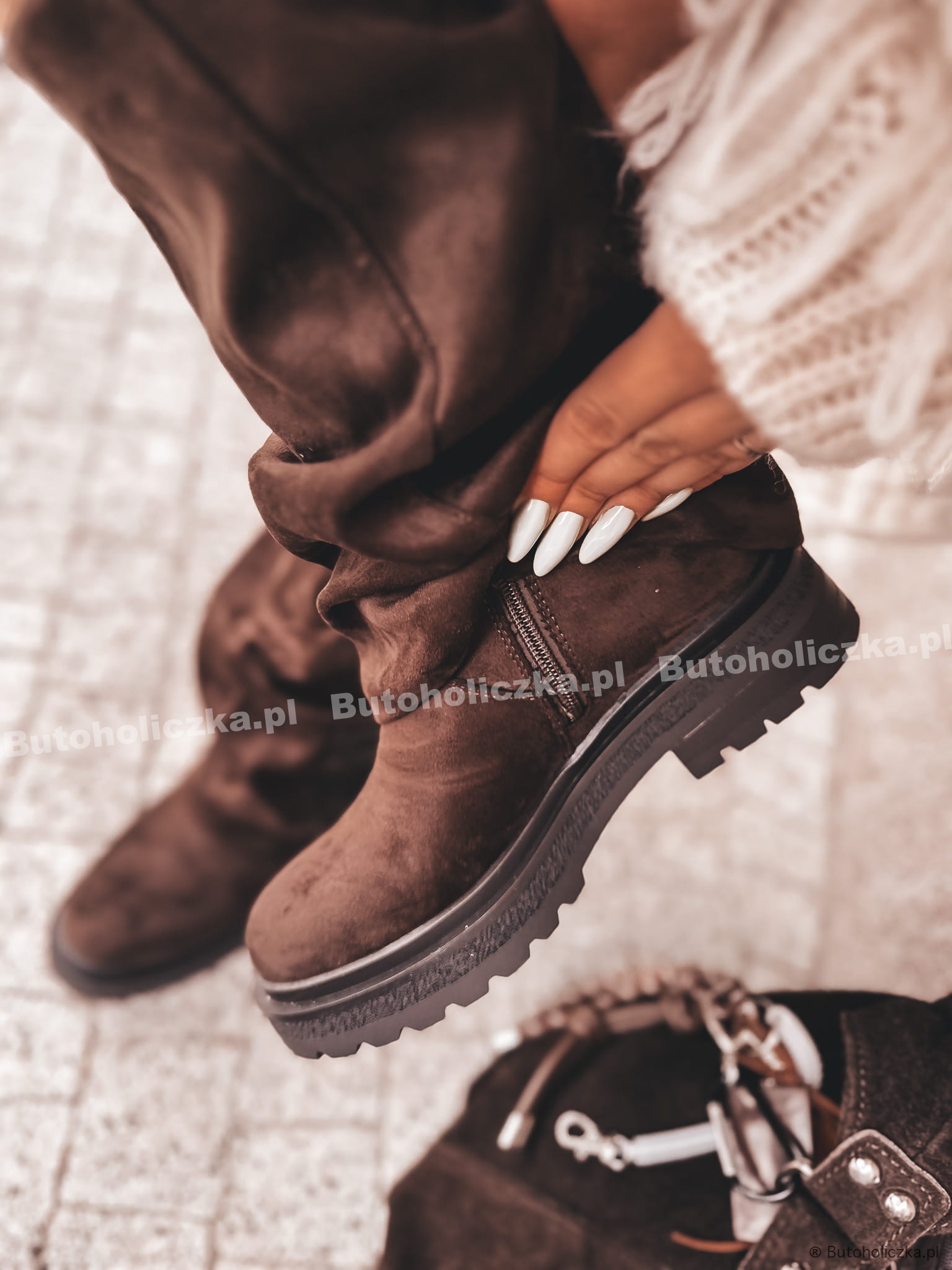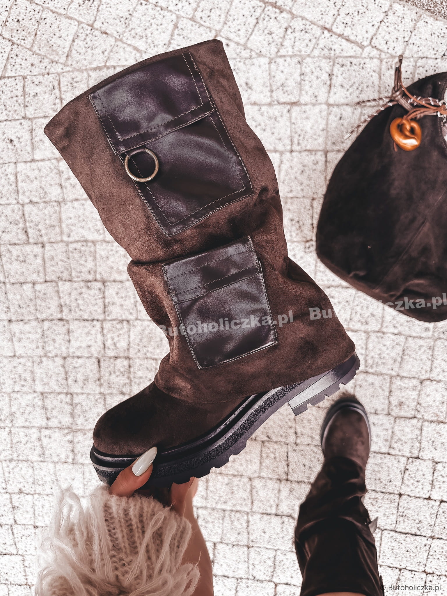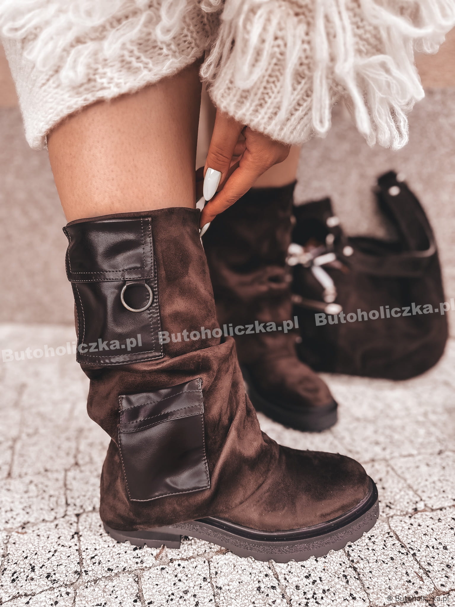 MEGA Modne Botki POCKET wyższe CZEKOLADA