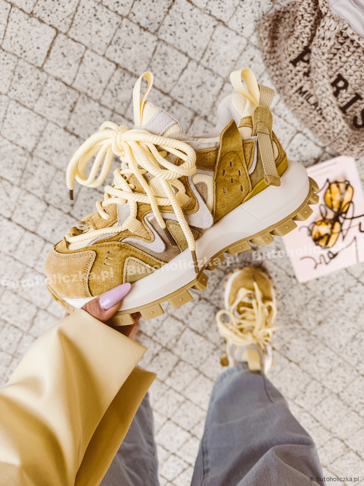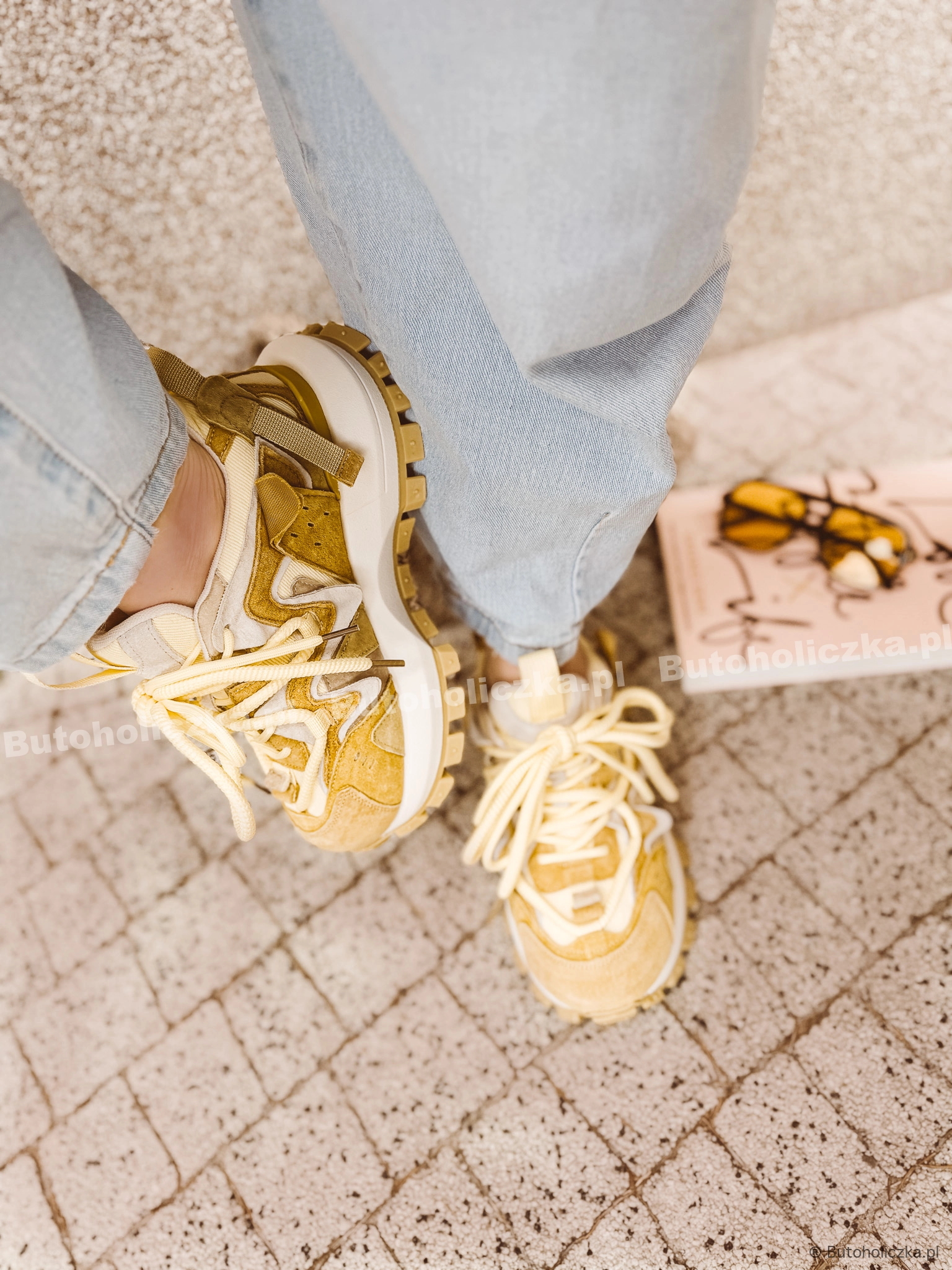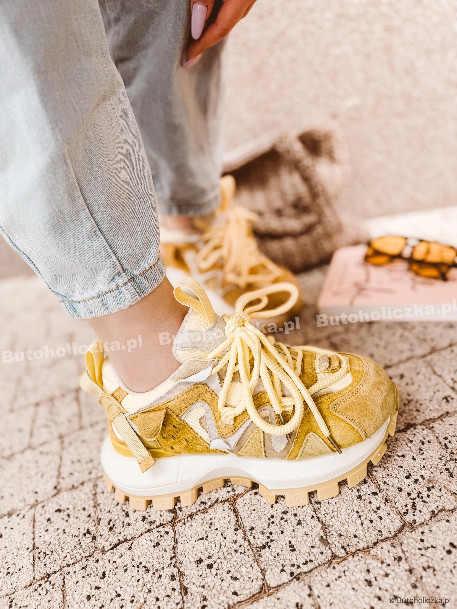 MEGA Buty sportowe DISCO na platformie SKÓRA NATURALNA CYTRYNA