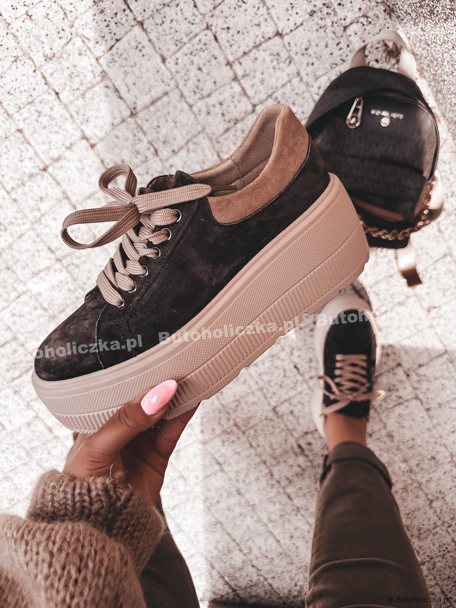 GOODIN MEGA Buty FREEDOM na koturnie HIT SKÓRA NATURALNA CZEKOLADA