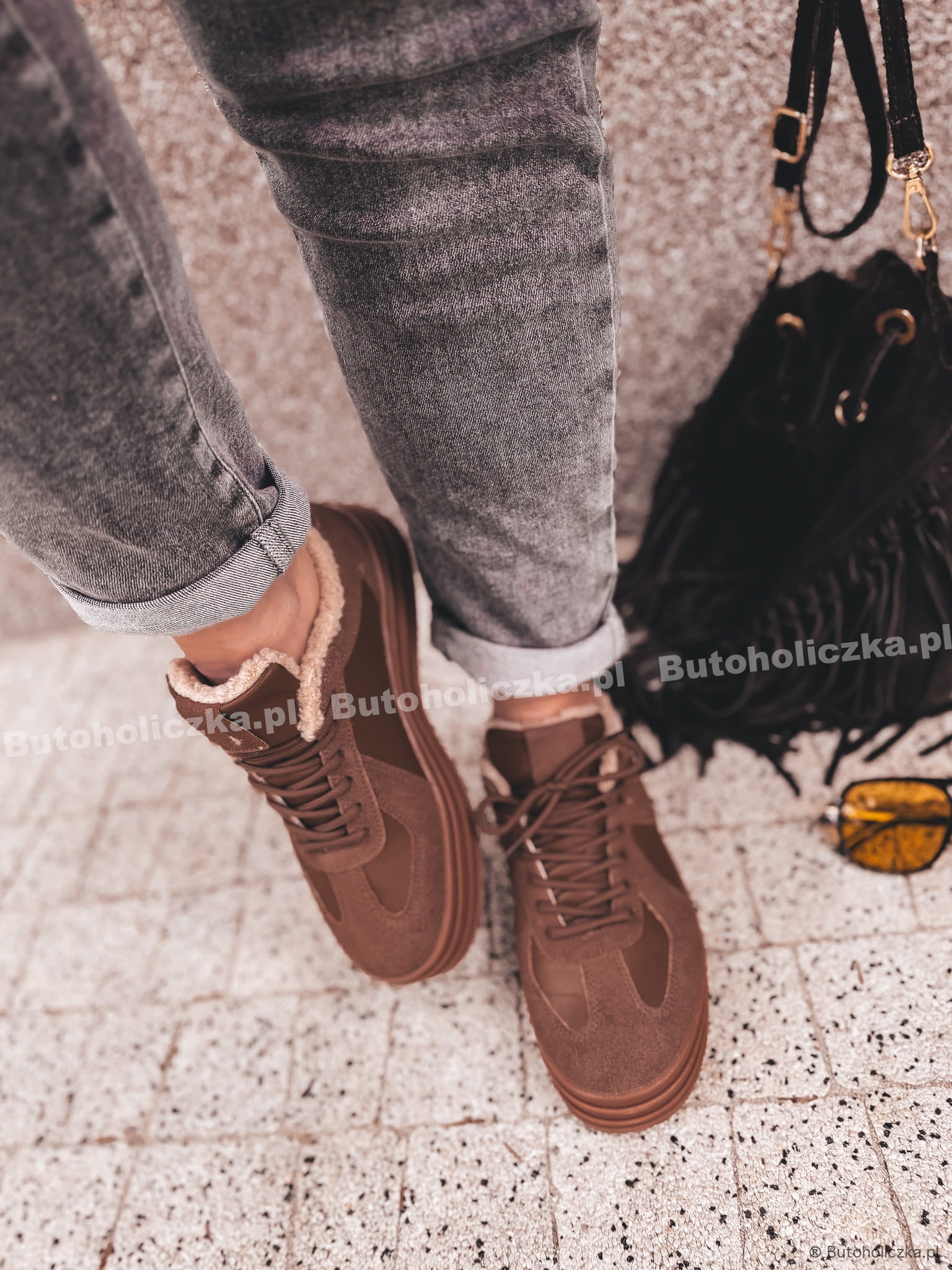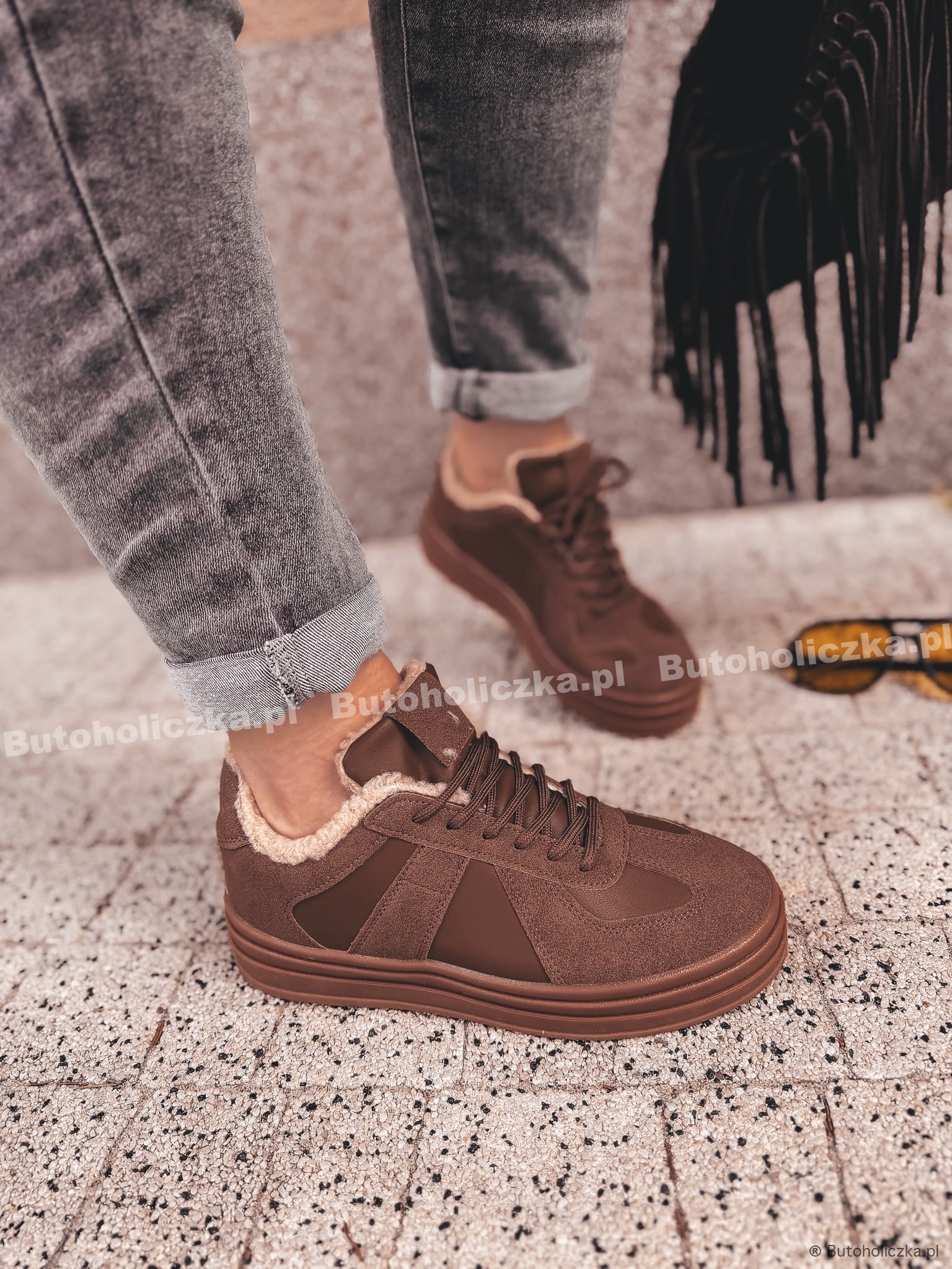 Klasyczne buty sportowe na wyższej platformie to totalny must have, idealnie sprawdzą się w niecodziennych stylizacjach. Idealnie na zimniejsze dni, ponieważ w środku są ocieplone kożuszkiem. Wiązane i niezwykle wygodne, będą idealnym uzupełnieniem stylizacji!