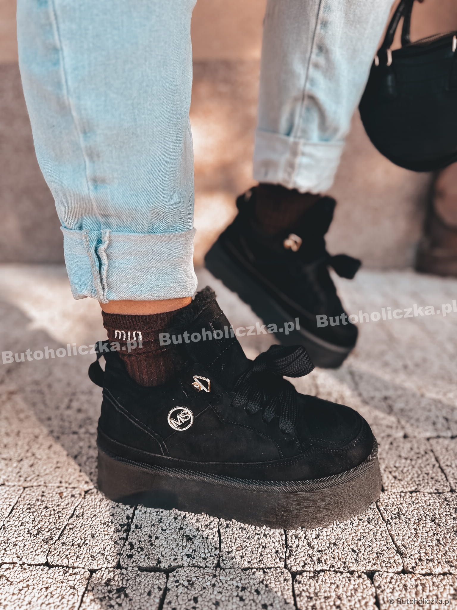 CIEPŁE Buty sportowe LICIOUS na platformie CZARNE