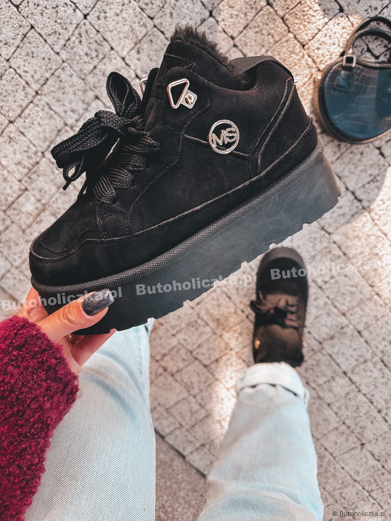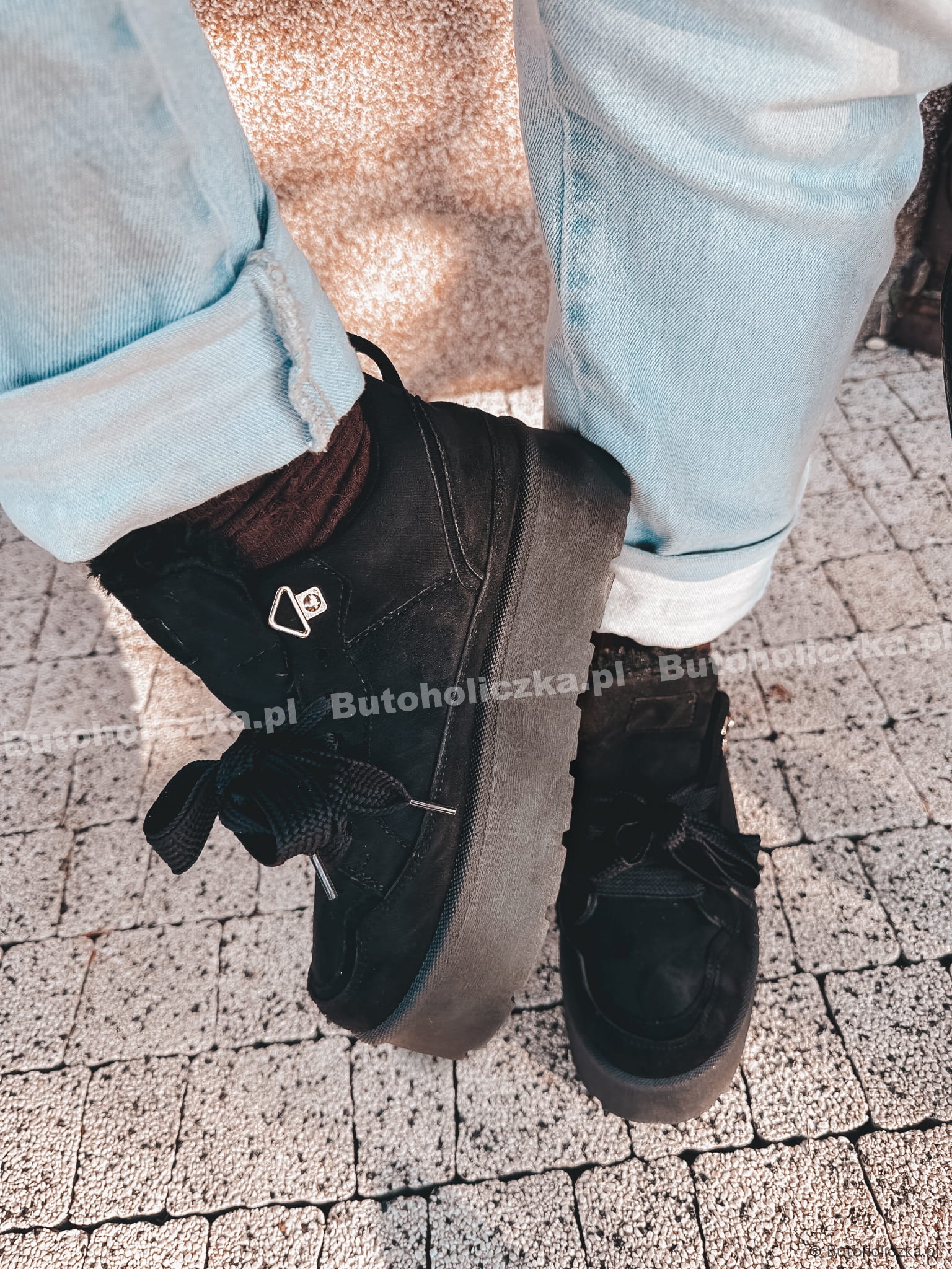 Ocieplane buty sportowe to idealna propozycja dla osób kótre chcą czuć się wygodnie i komfortowo nawet w zimine dni. Na podwyższonej podeszwie, wiązane na sznurówki. Stworzysz cieplutką i modną stylizację z tym modelem.