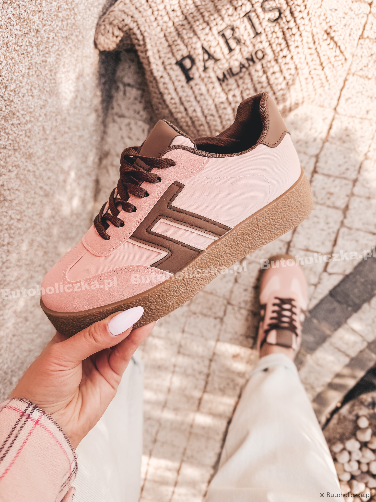 Klasyczne buty na wyższej podeszwie to coś co każda z nas lubi czasem włożyć. Sznurowane, na grubszej podeszwie, dzięki czemu są niezwykle wygodne. Piękne odcienie różu z czekoladowymi wstawkami to nadchodzący hit sezonu.
