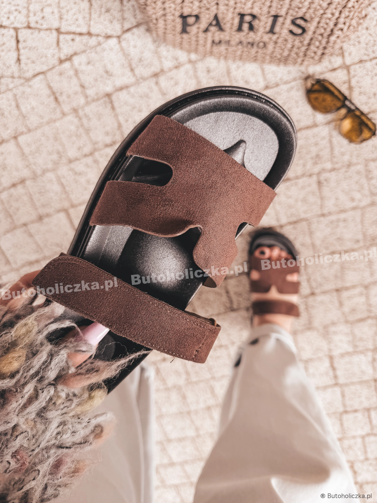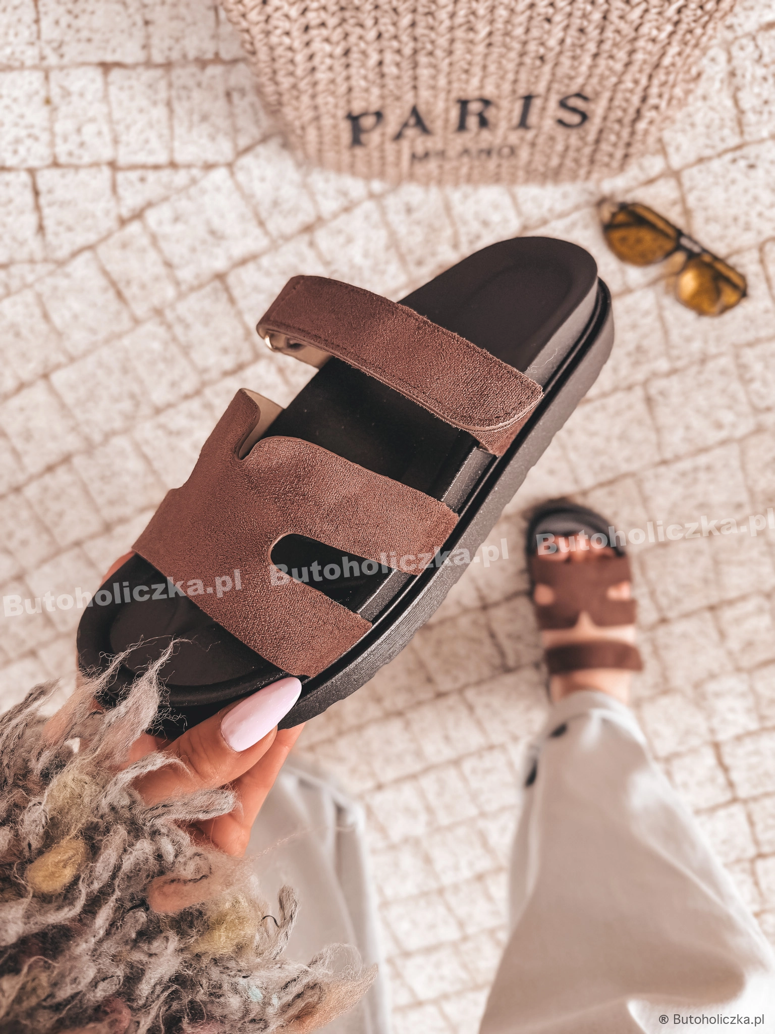 HIT Mega Klapki CHYPE z klamerkami ZAMSZOWE CZEKOLADA