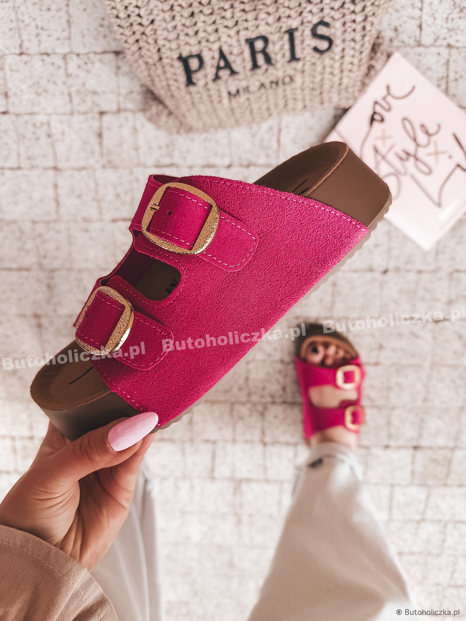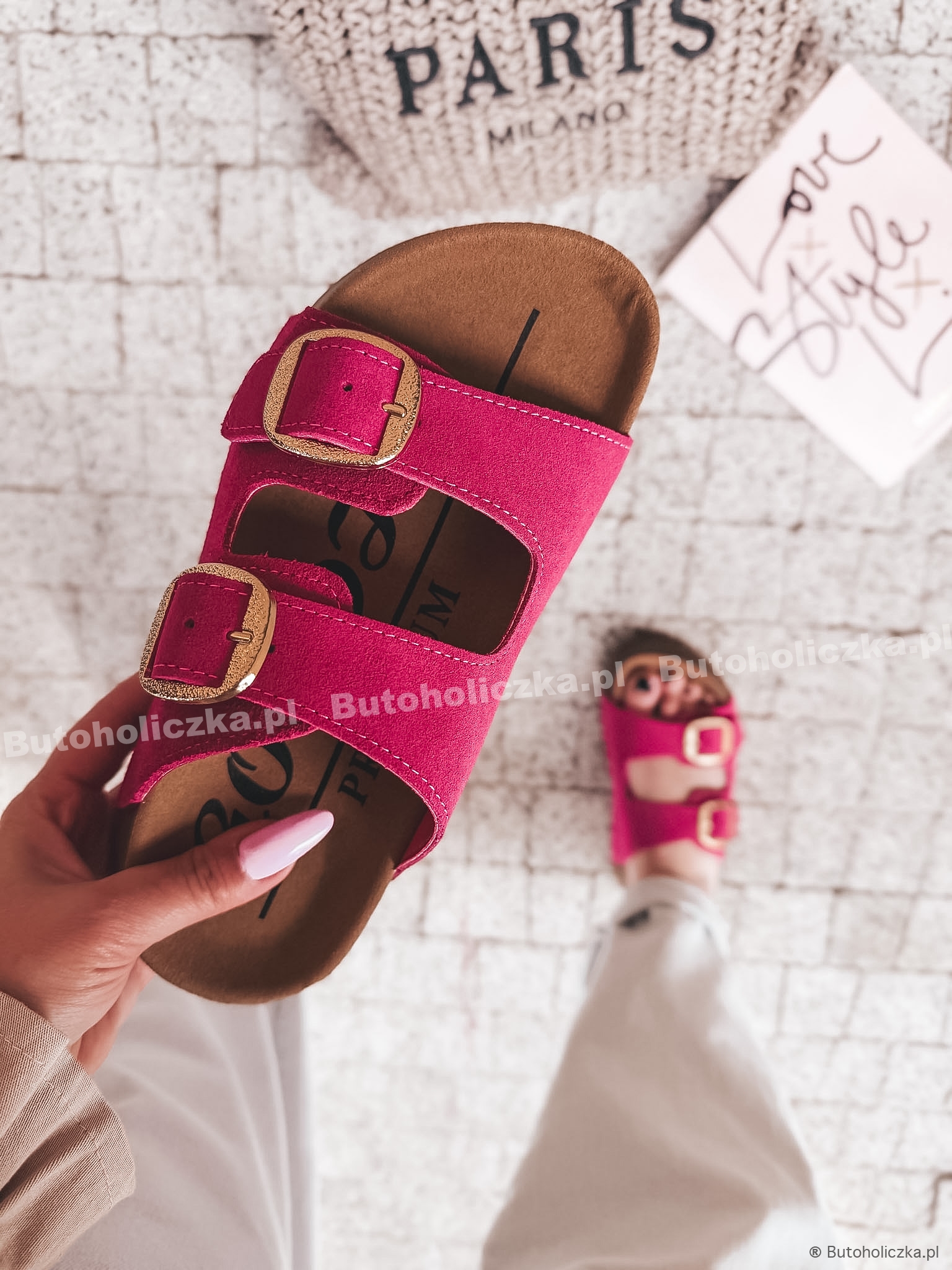 GOODIN PREMIUM Klapki RUMI na platformie FUKSJA