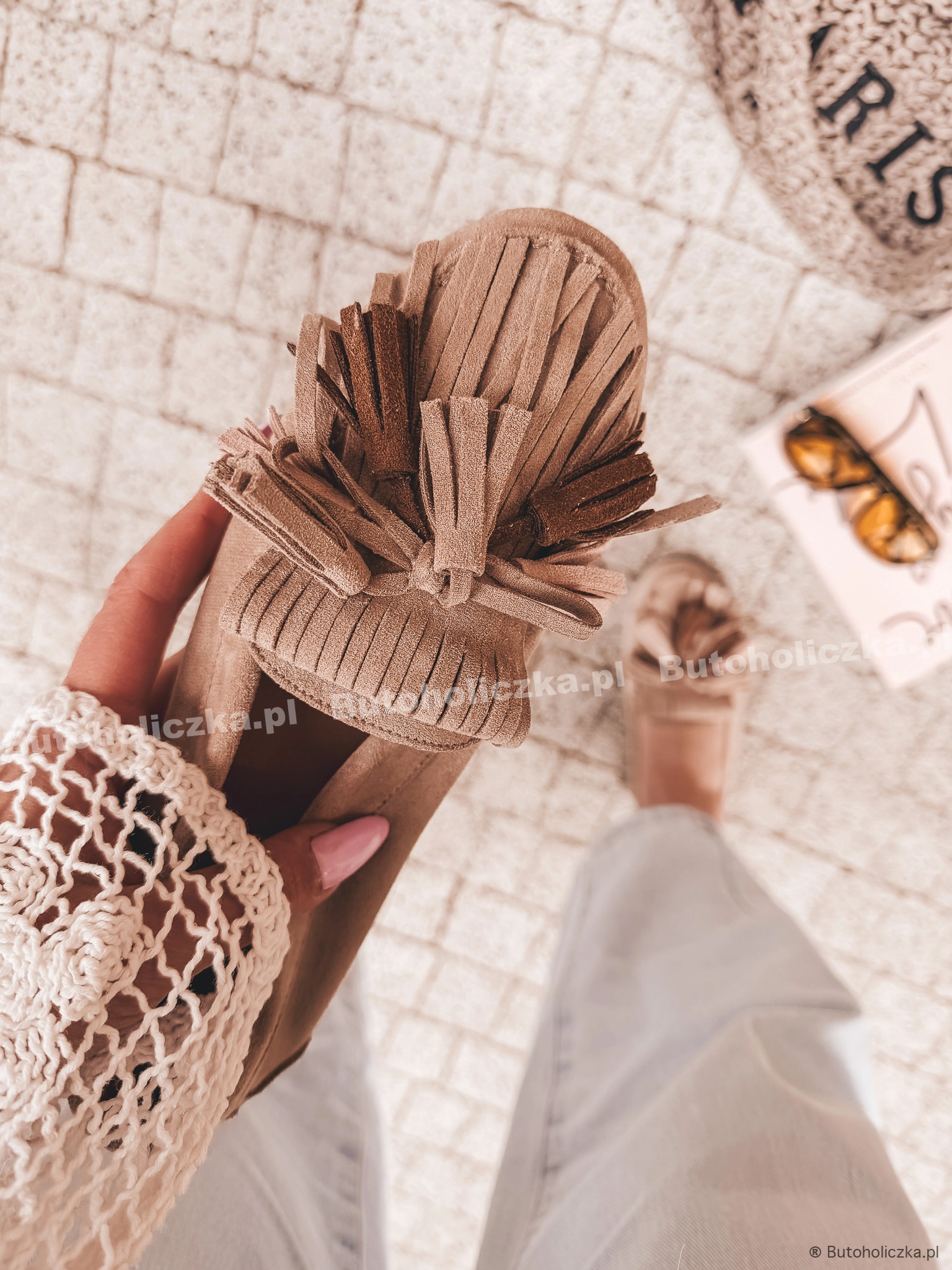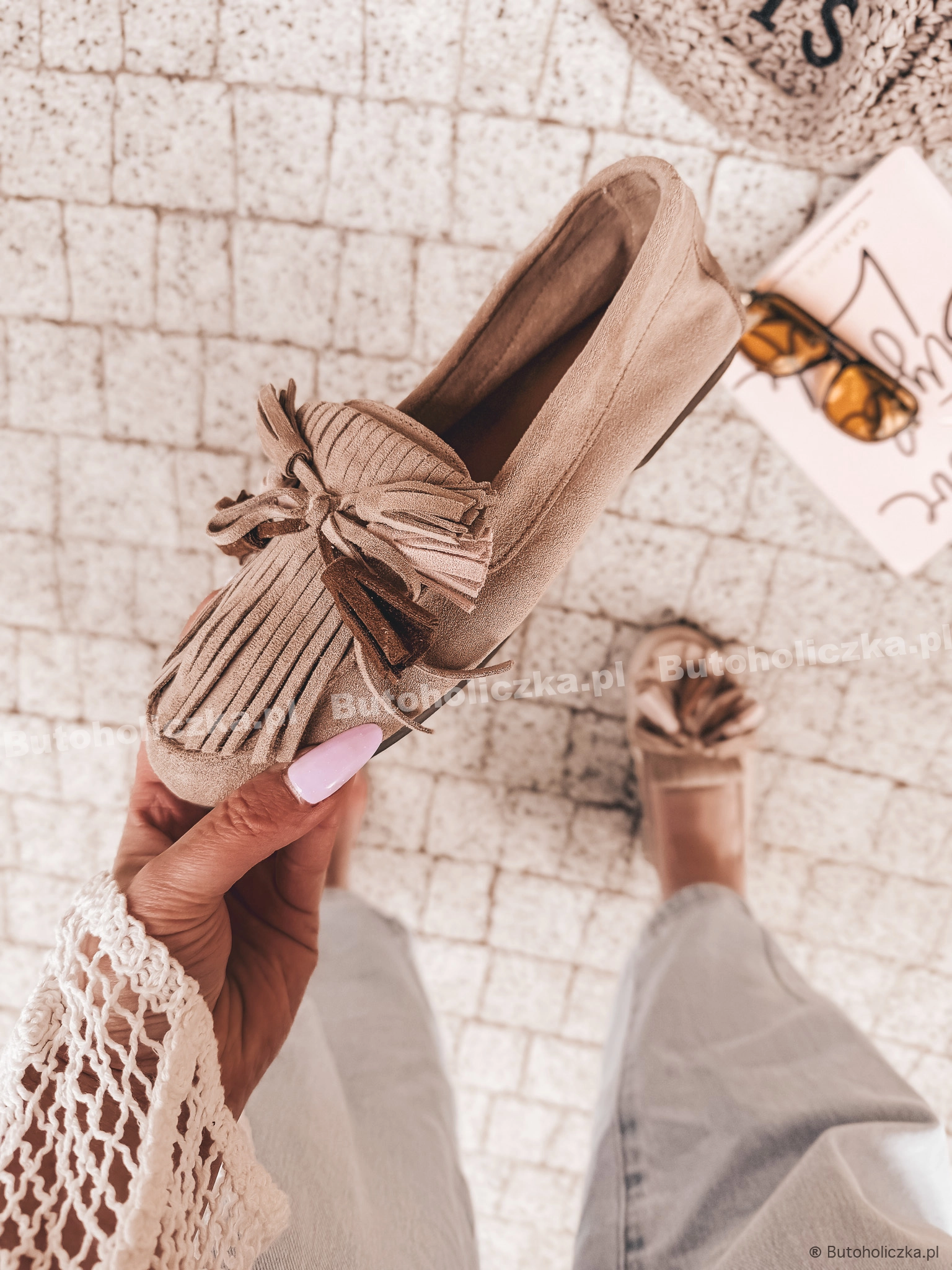 MEGA MIĘCIUTKIE Mokasyny JESS frędzelki BEŻOWE