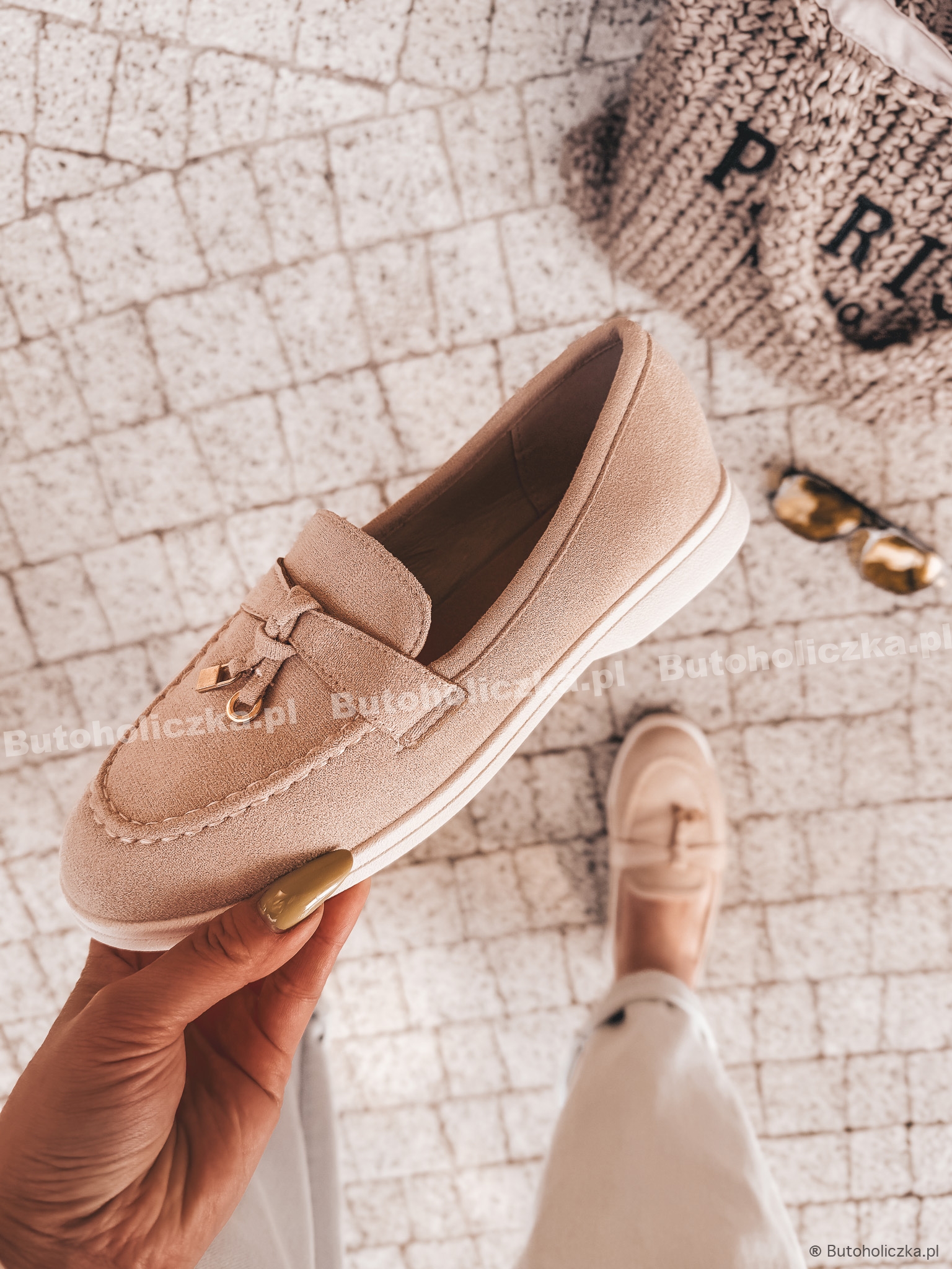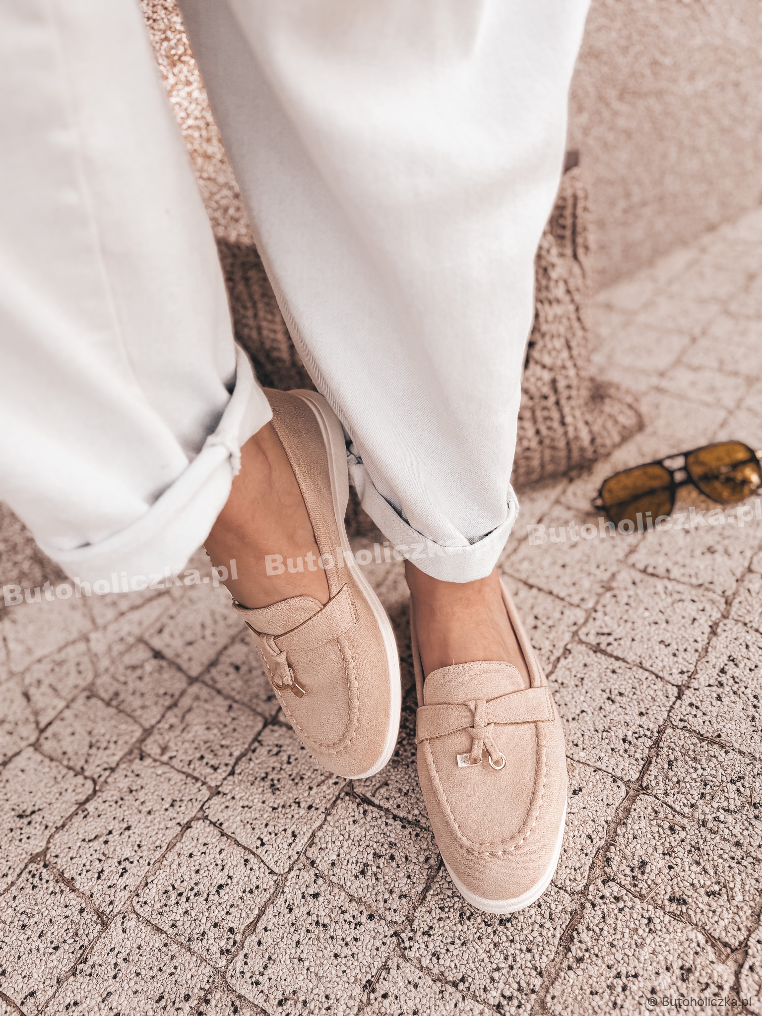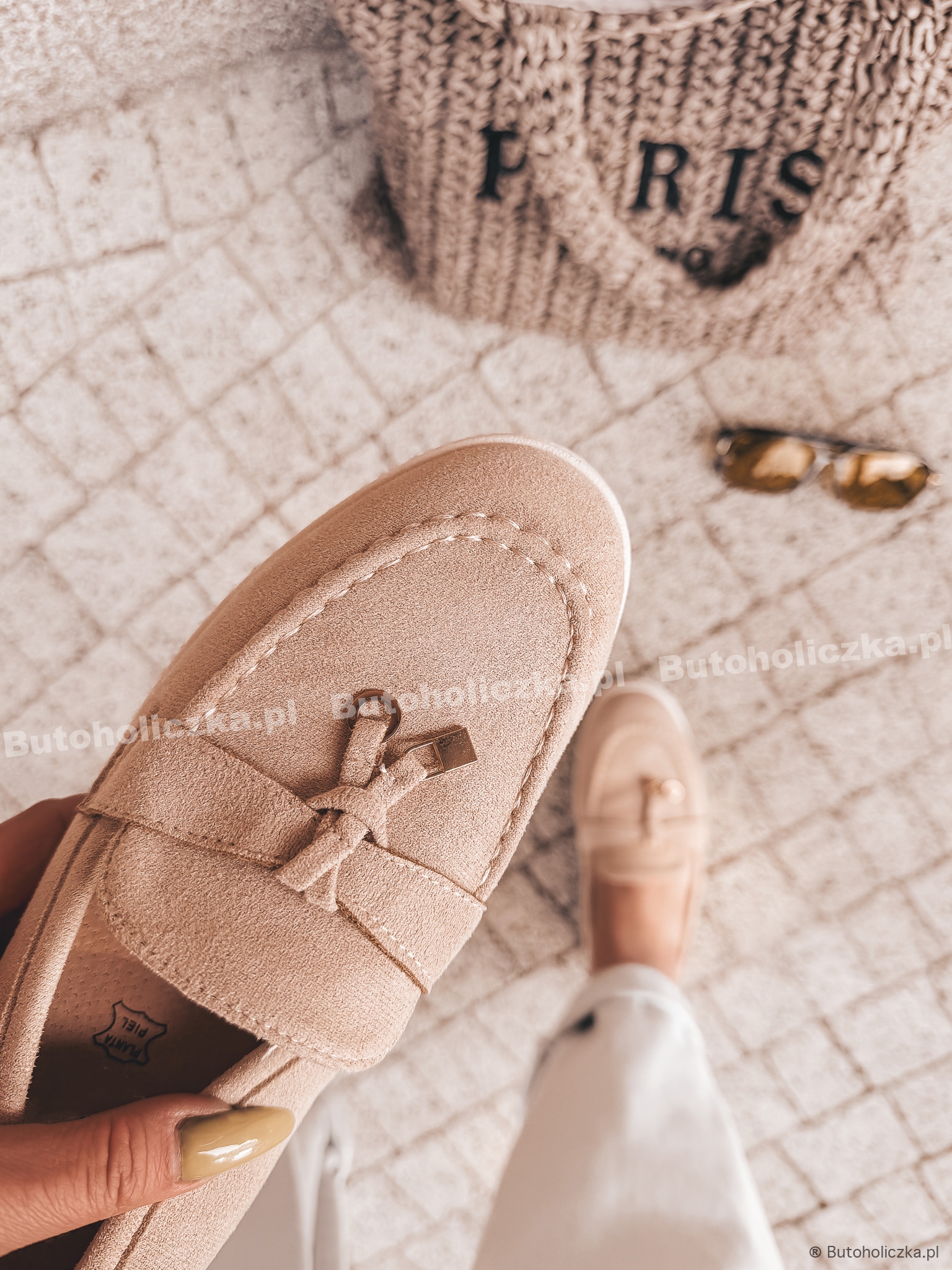 MIĘCIUTKIE Mokasyny LOKY z przywieszką BEŻOWE