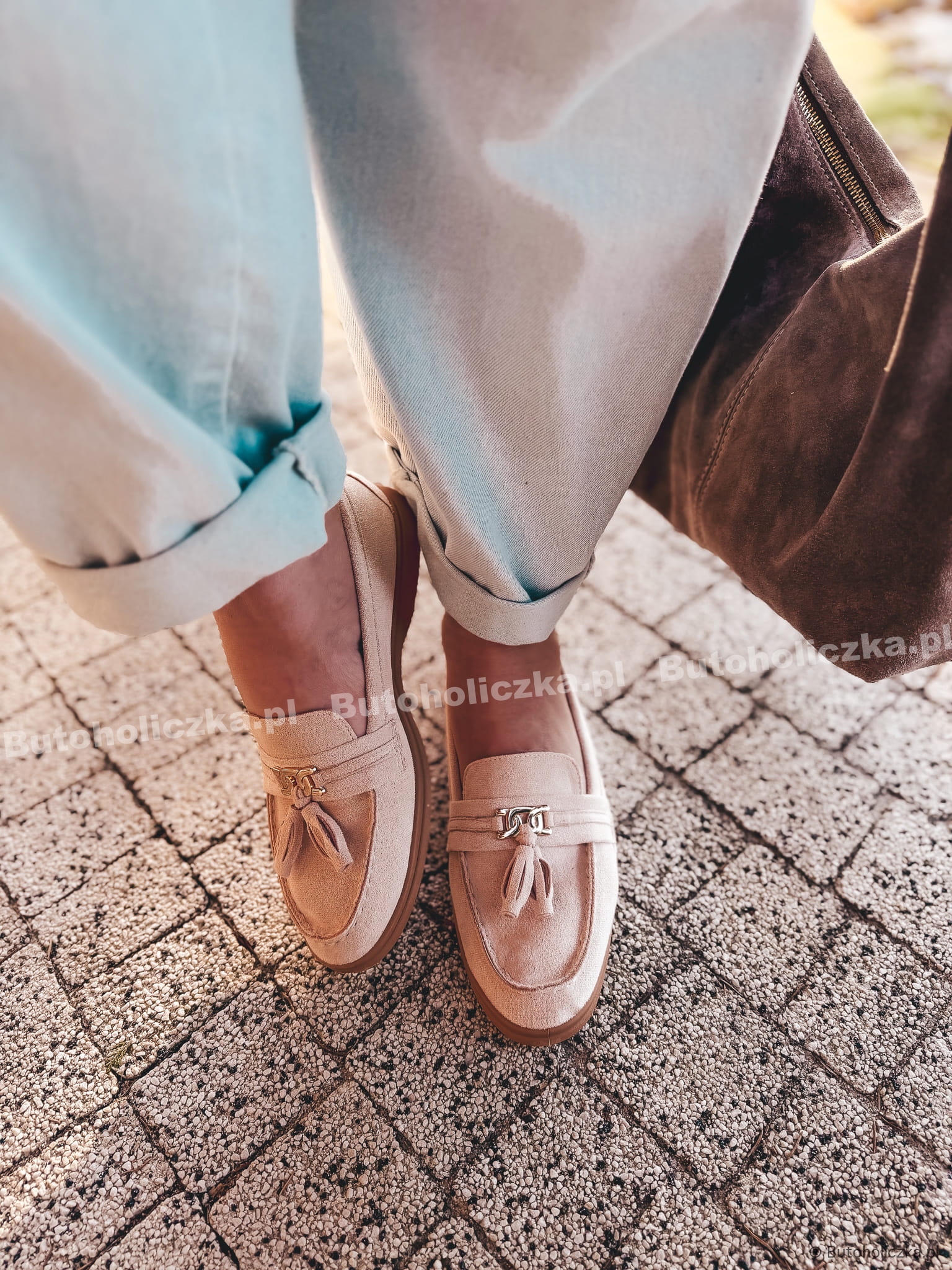 Najmodniejsze Mokasyny PAPEL Zamszowe BEŻ