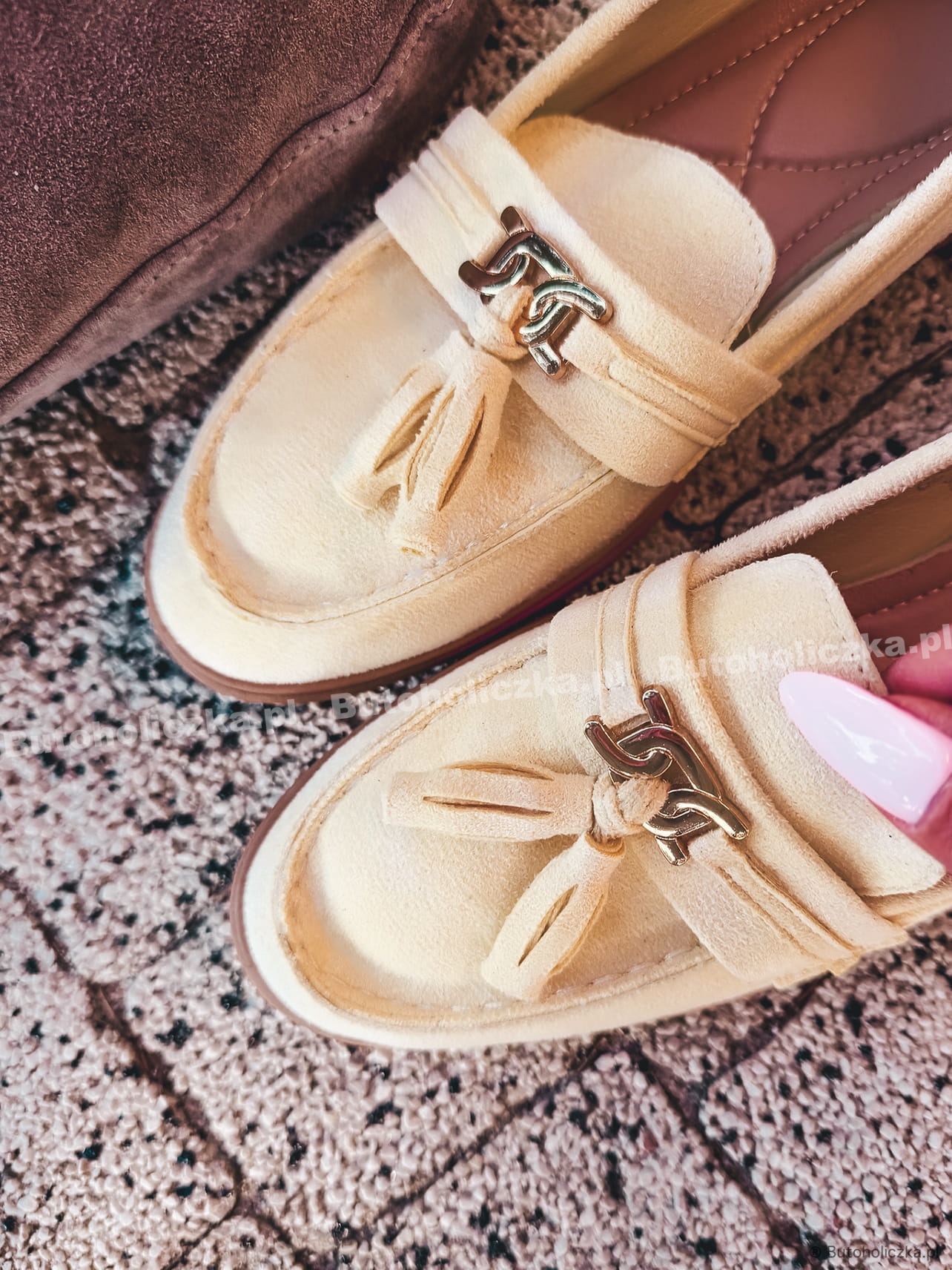 Wspaniałe klasyczne mokasyny na wyższej gumowej podeszwie, minimalistyczne ozdoby dodają im uroku i elegancji. Bardzo wygodne, sprawdzą się do wielu codziennych stylizacji, do pracy lub na spacer. Ozdabiane delikatnymi troczkami.