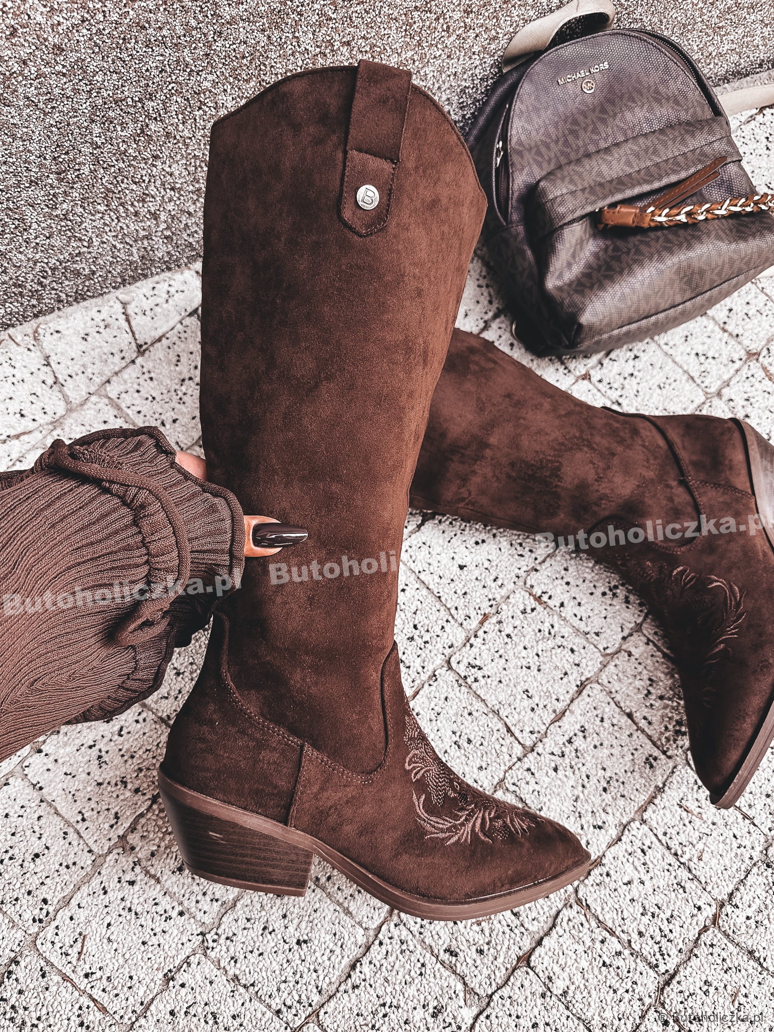 Ekstra Kozaki MONA w stylu kowbojek CZEKOLADA