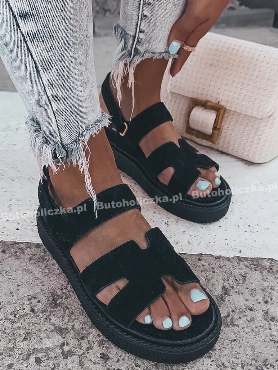 Wygodne Sandałki BROOK zamszowe CZARNE