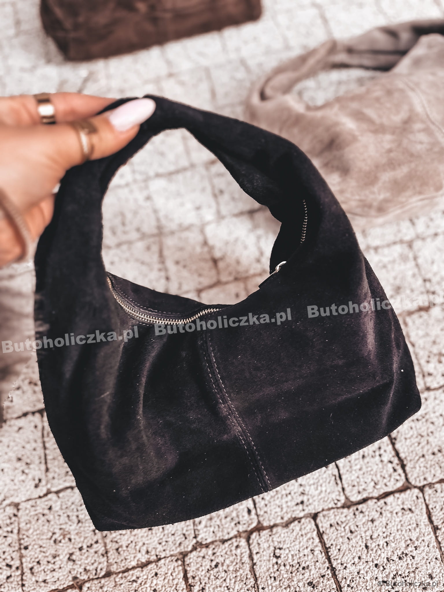 Stylowa torebka w kolorze czarnym. Przypadnie do gustu miłośniczkom jakościowych dodatków i naturalnych materiałów. Została wykonana w 100% ze skóry zamszowej, dlatego posłuży Ci przez wiele lat. Torebka damska pozwoli Ci trzymać przy sobie wszystkie najpotrzebniejsze rzeczy. Noś ją razem z sukienkami i spodniami.