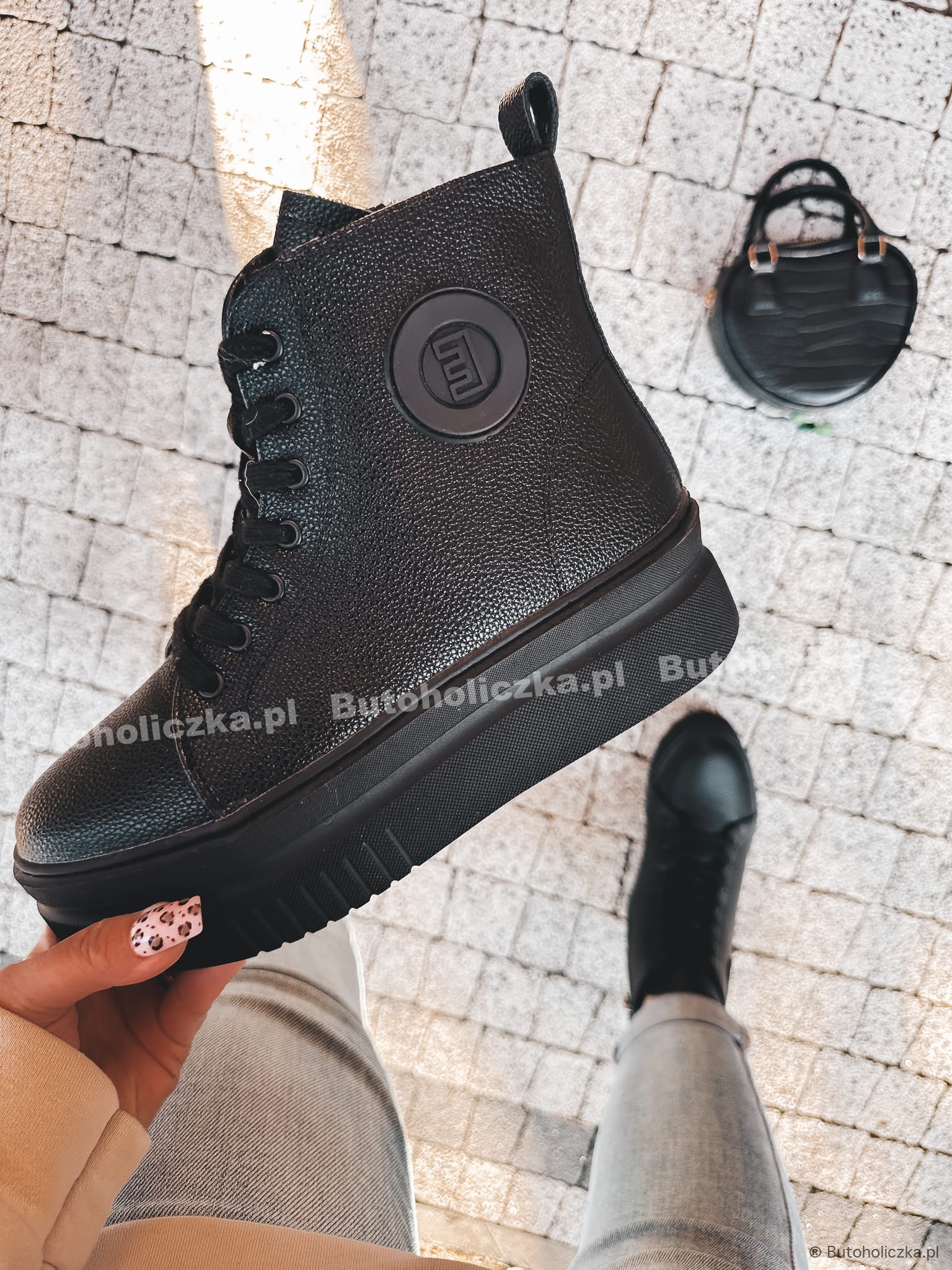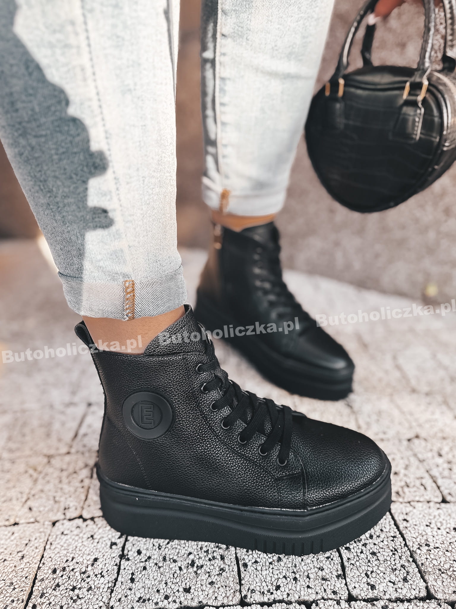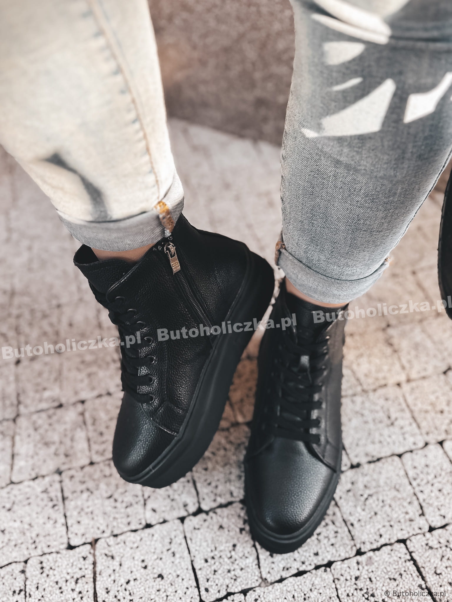 Wygodne Trampki TURYN OCIEPLANE za kostkę CZARNE