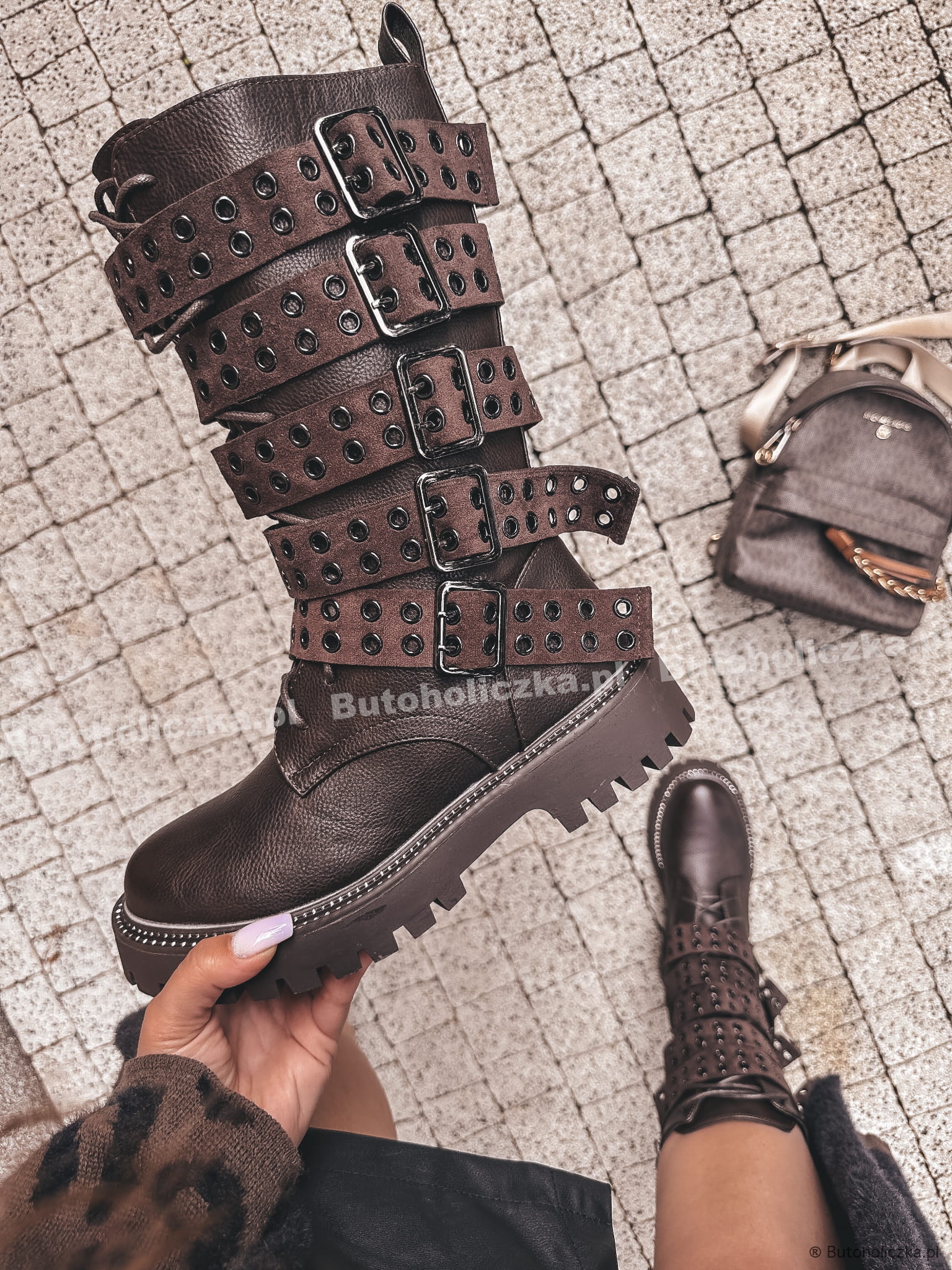 Niezwykle oryginalne botki na traktorowej podeszwie i do tego mocno ozdobione klamerkamk. Propozycja w sam raz dla rockowych babeczek z pazurem. Zabaw się modą i wykreuj swoją rzeczywistość z traperami FANATIC!