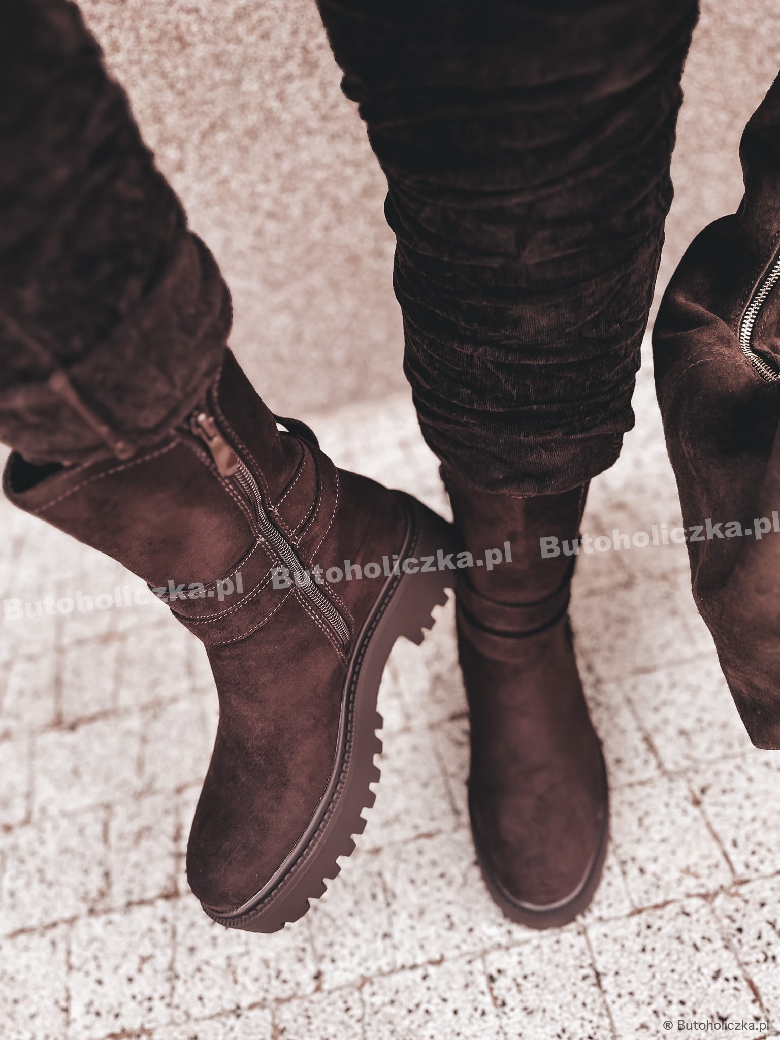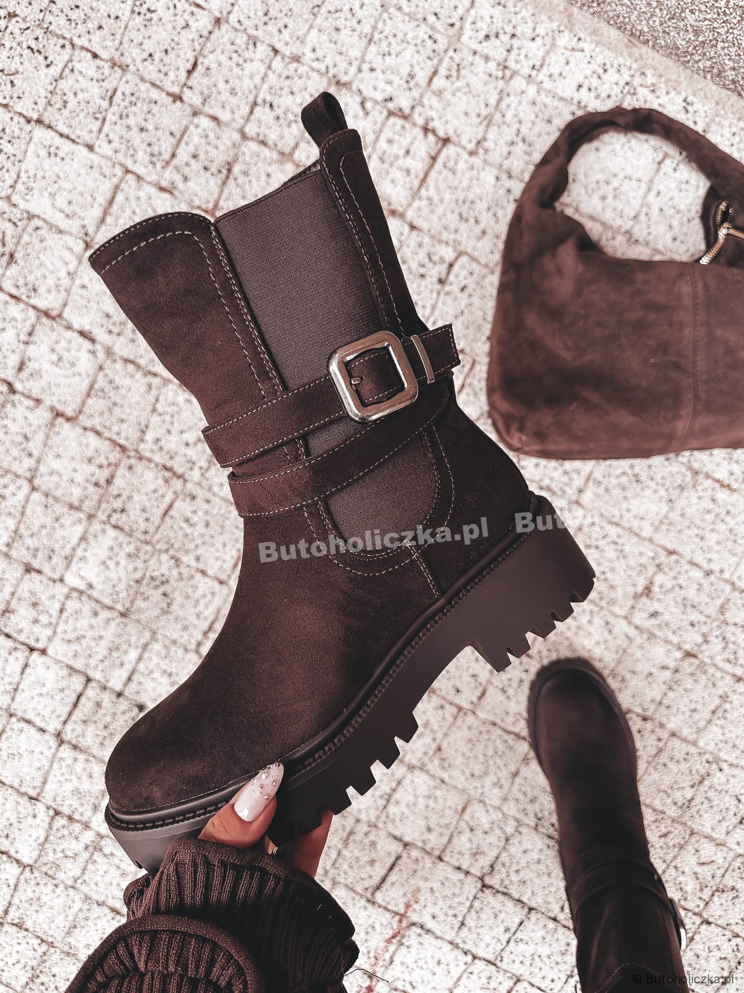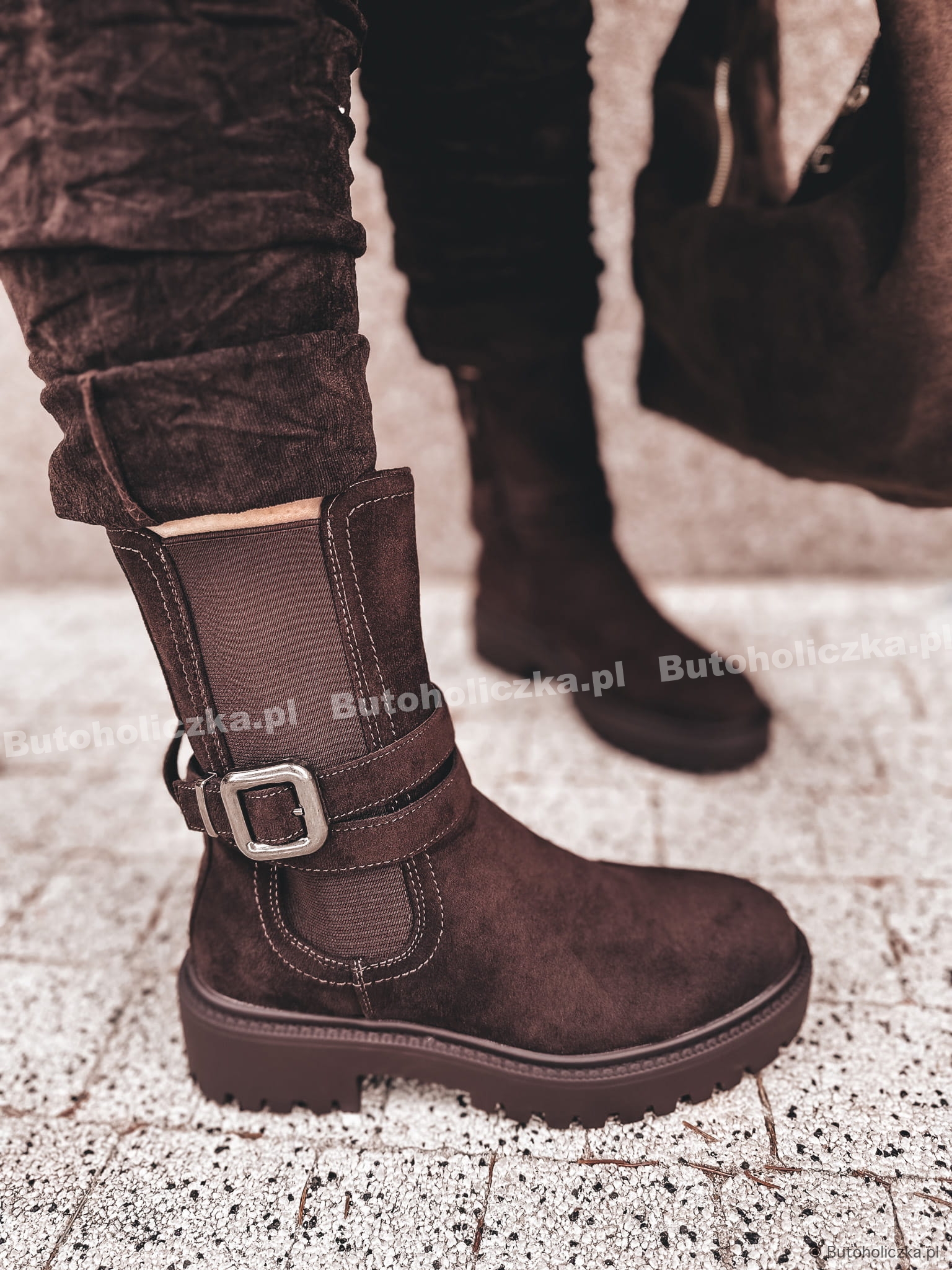 MODNE Workery TAUREN z klamrą CZEKOLADOWE